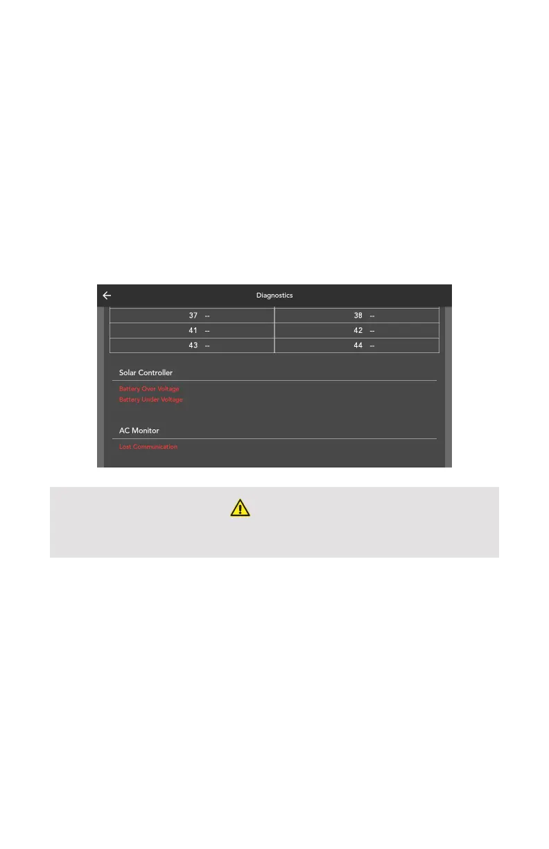 The Diagnostics screen will display any faults detected on the Solar