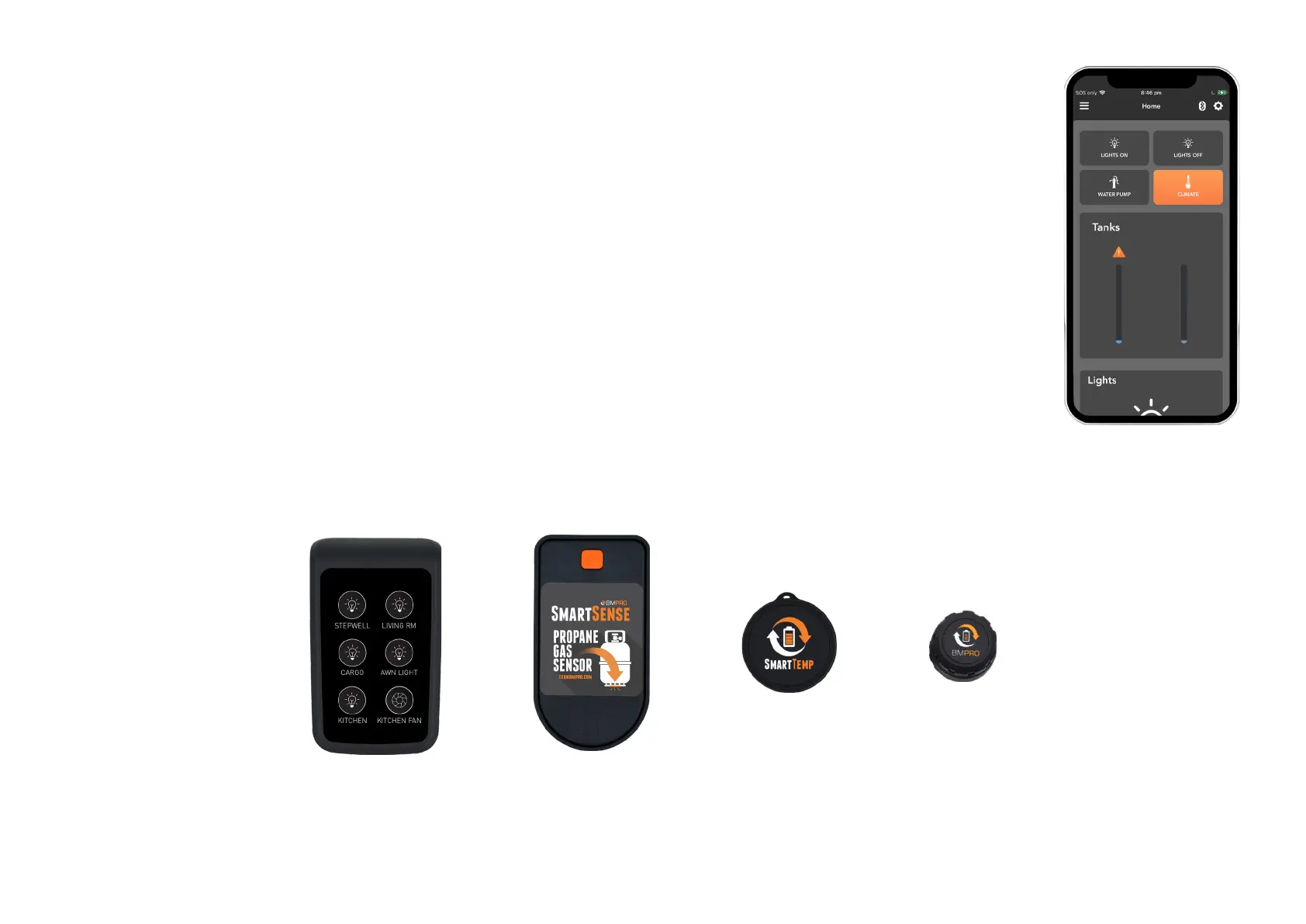 BMPRO’s range of SmartConnect sensors can be paired to the RVMasterNode using the