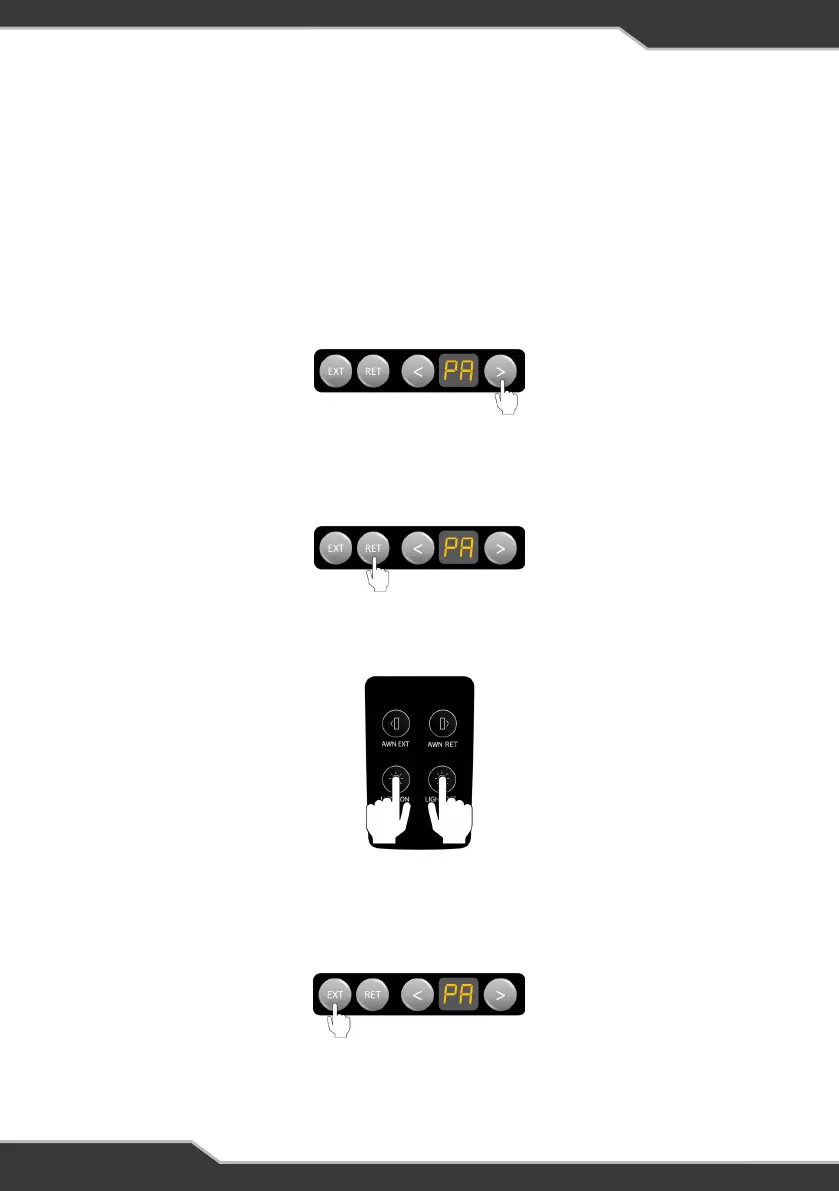 1. Using the < or > button on the RVMasterController, navigate to the ‘PA’ menu item
