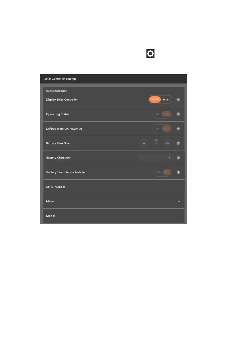 The Solar Controller Settings are used to configure the Solar Controller to your