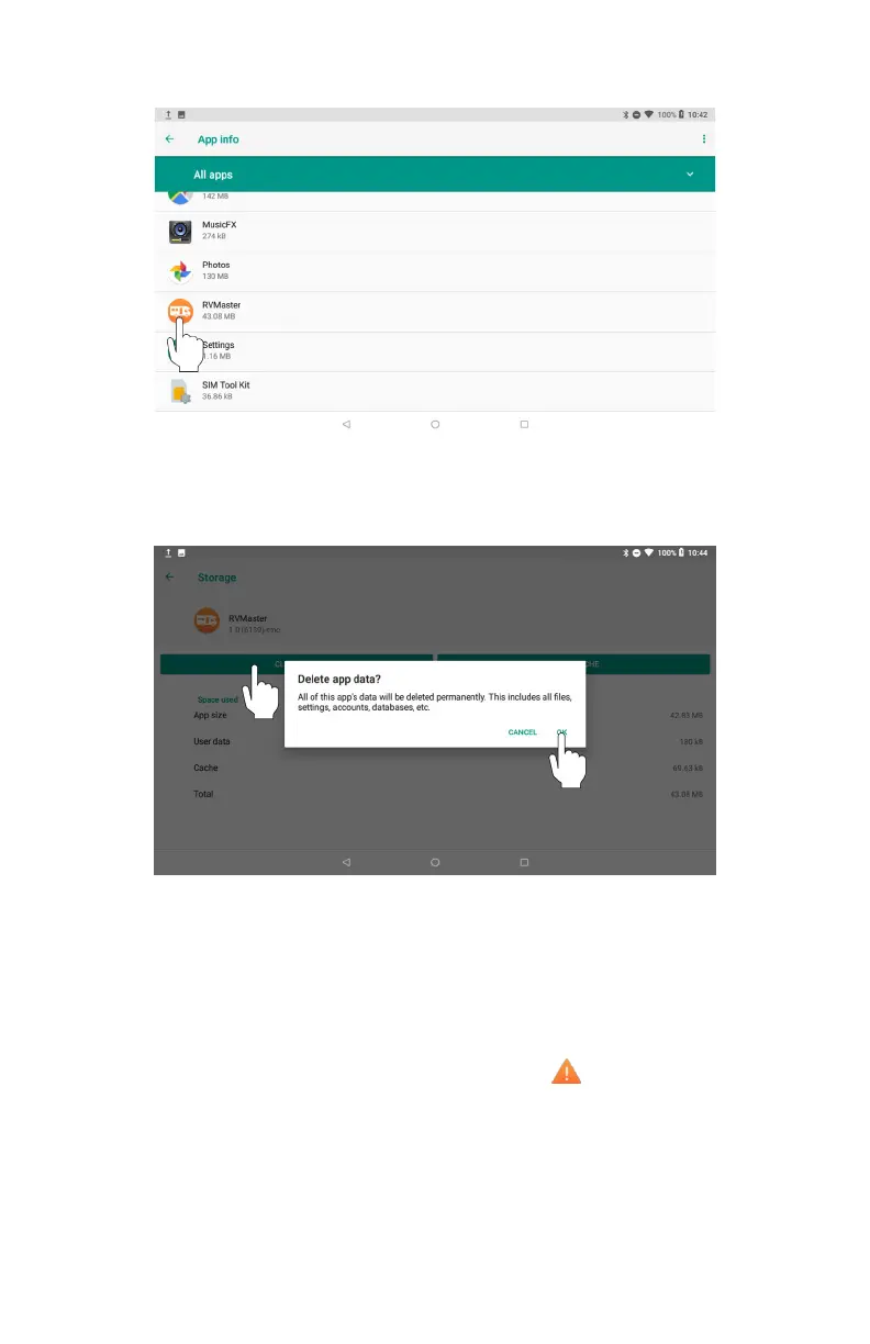7. Press Clear Data and press OK at the prompt to clear the RVMaster App data.