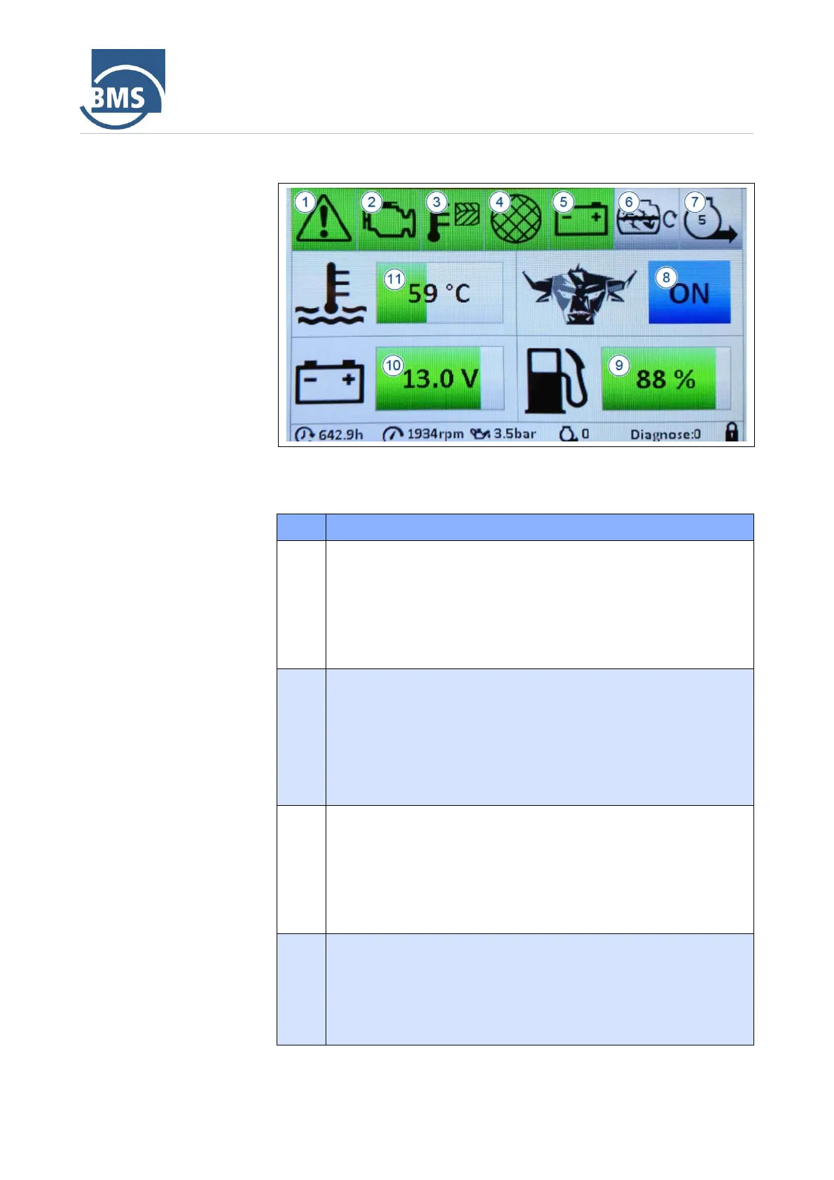 − Green: The emergency stop button (see Section 4.6.1) was not