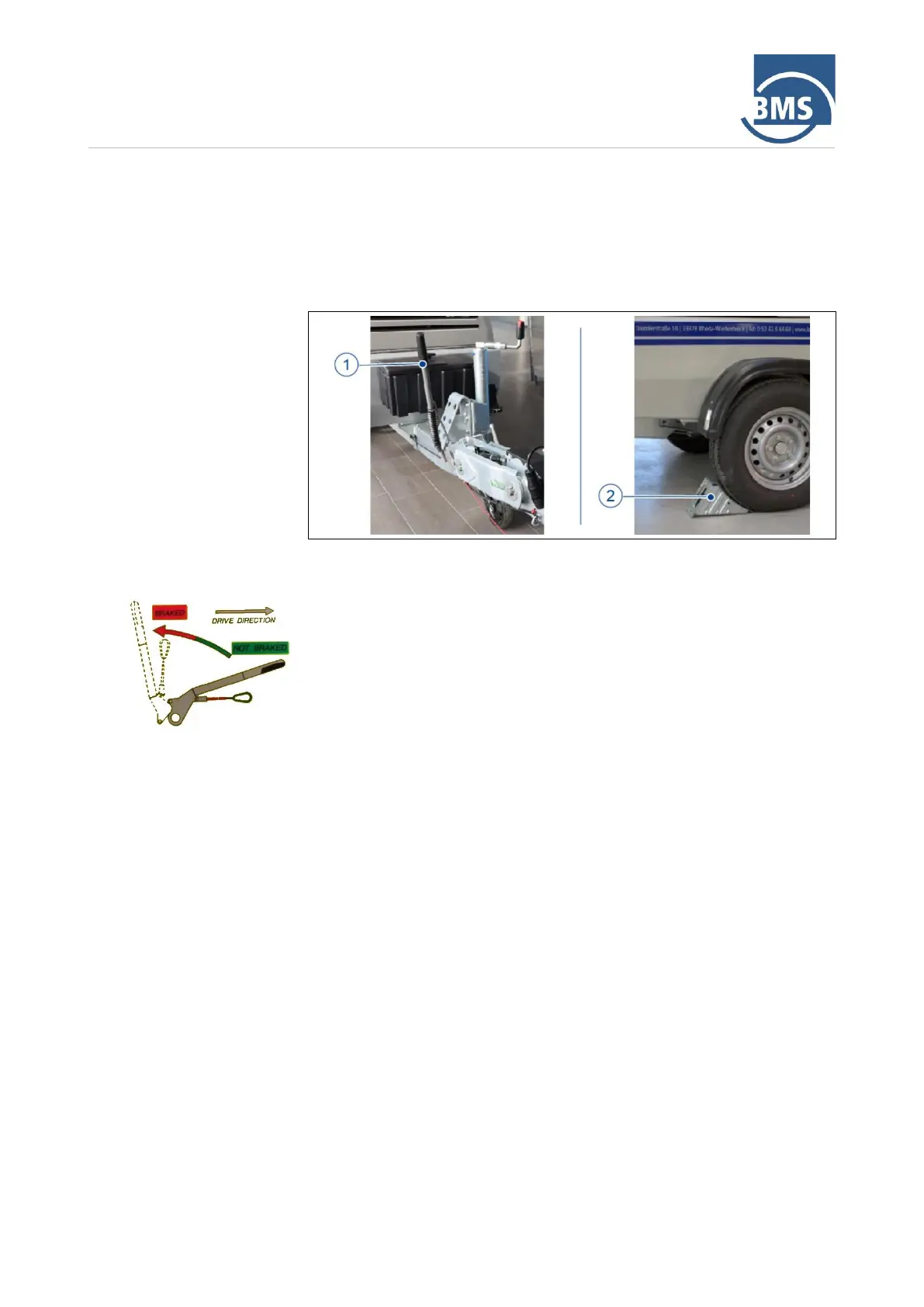 3. Secure the trailer by applying the handbrake (1) and securing the trailer