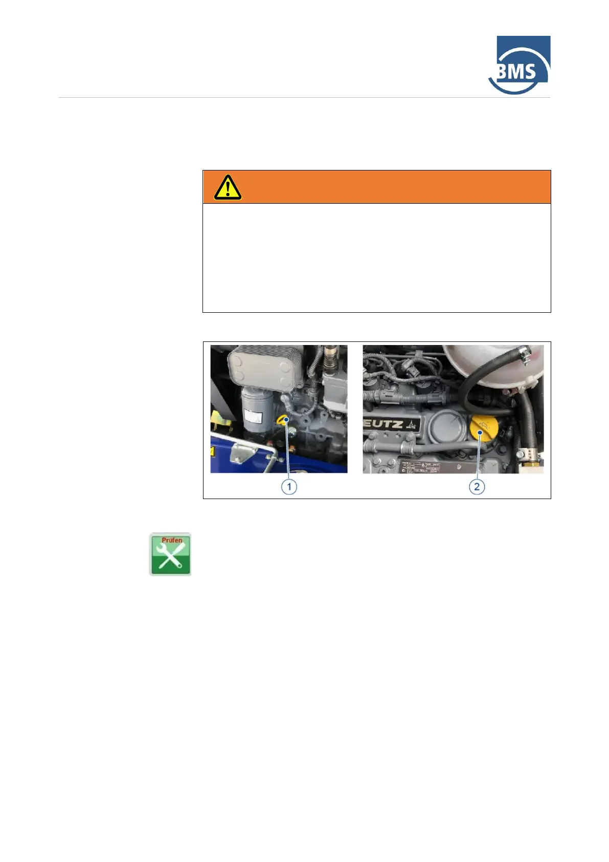 2. Check the oil level on the diesel motor. Proceed as follows: