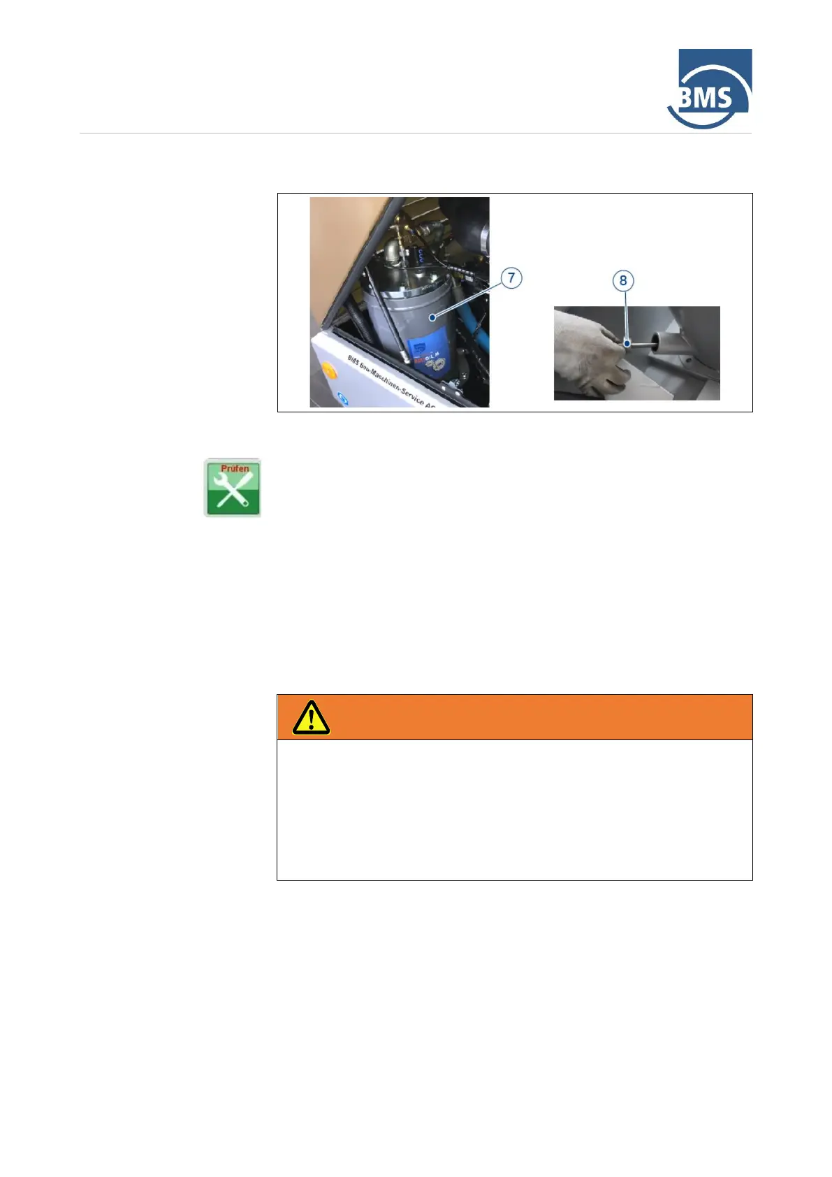 7. Check the oil level of the compressor oil in the separator (7). Proceed
