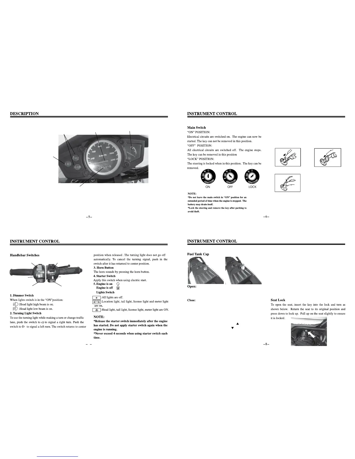 *The key can not be removed if the fuel tank cap is not