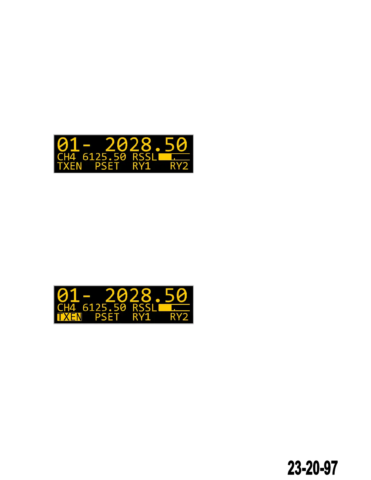 single-height text. The top line (double-height) is reserved for Transmitter channel/frequency status. If a