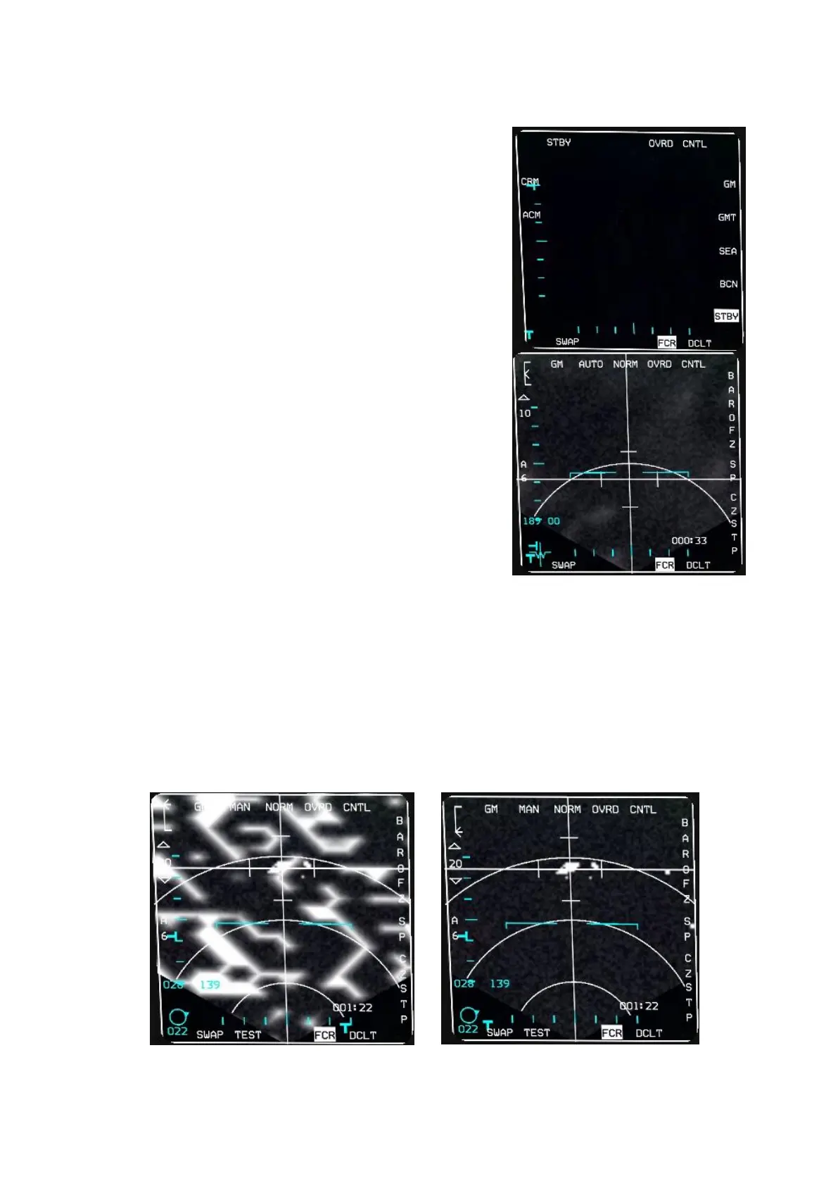 marker displayed in the top left corner of the MFD. The two pictures below illustrate the A-G FCR gain