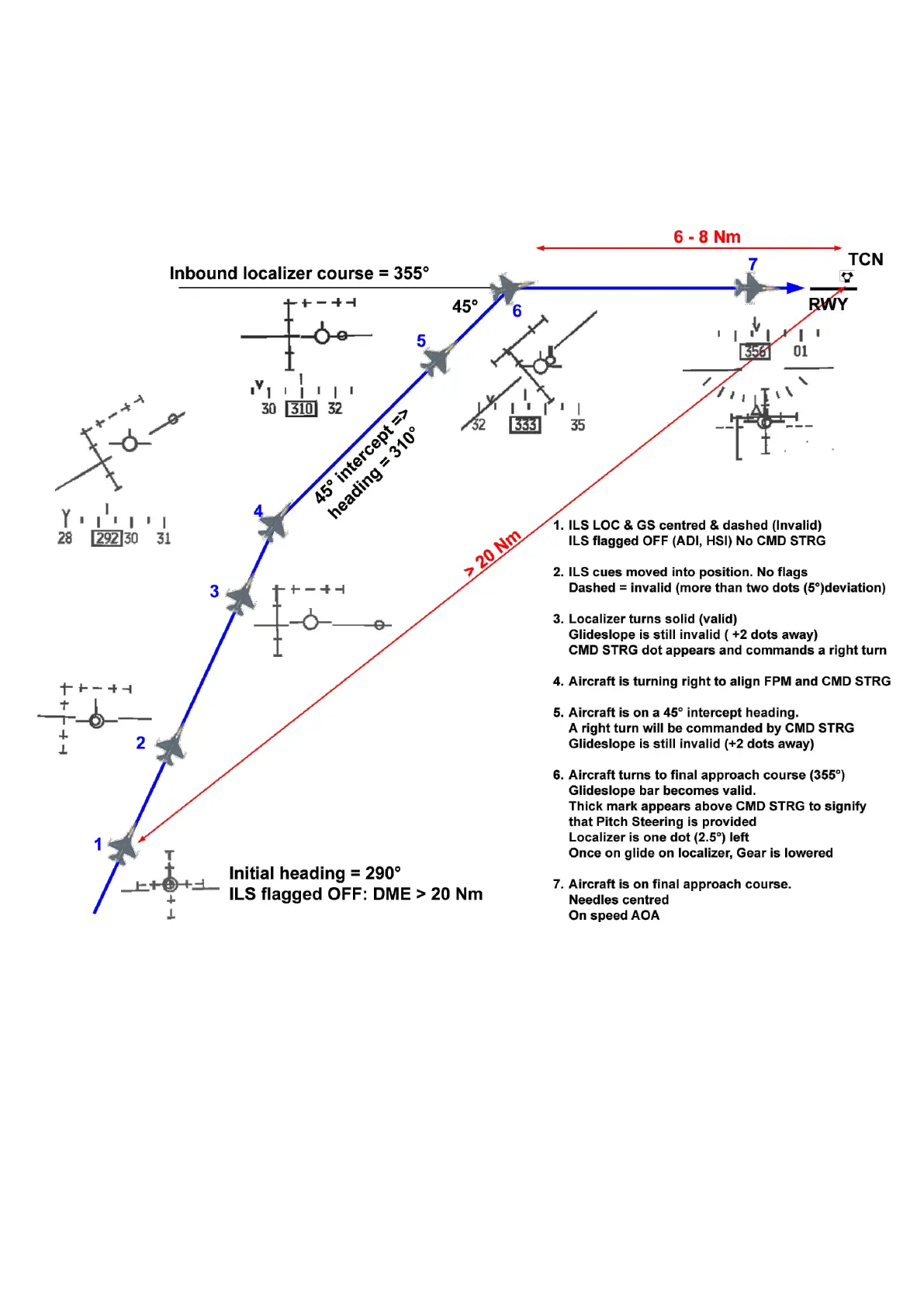 The following picture shows a typical sight picture the pilot sees when flying an ILS approach: