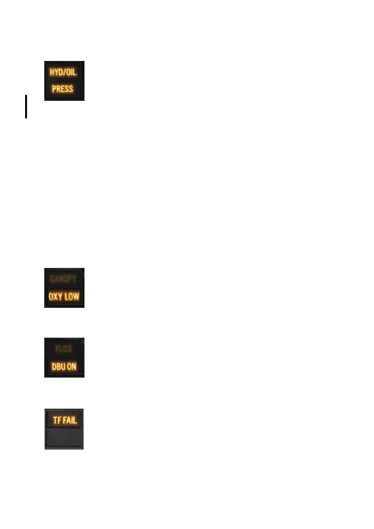 when regulator pressure is below 5 psi. Refer to OBOGS malfunction.