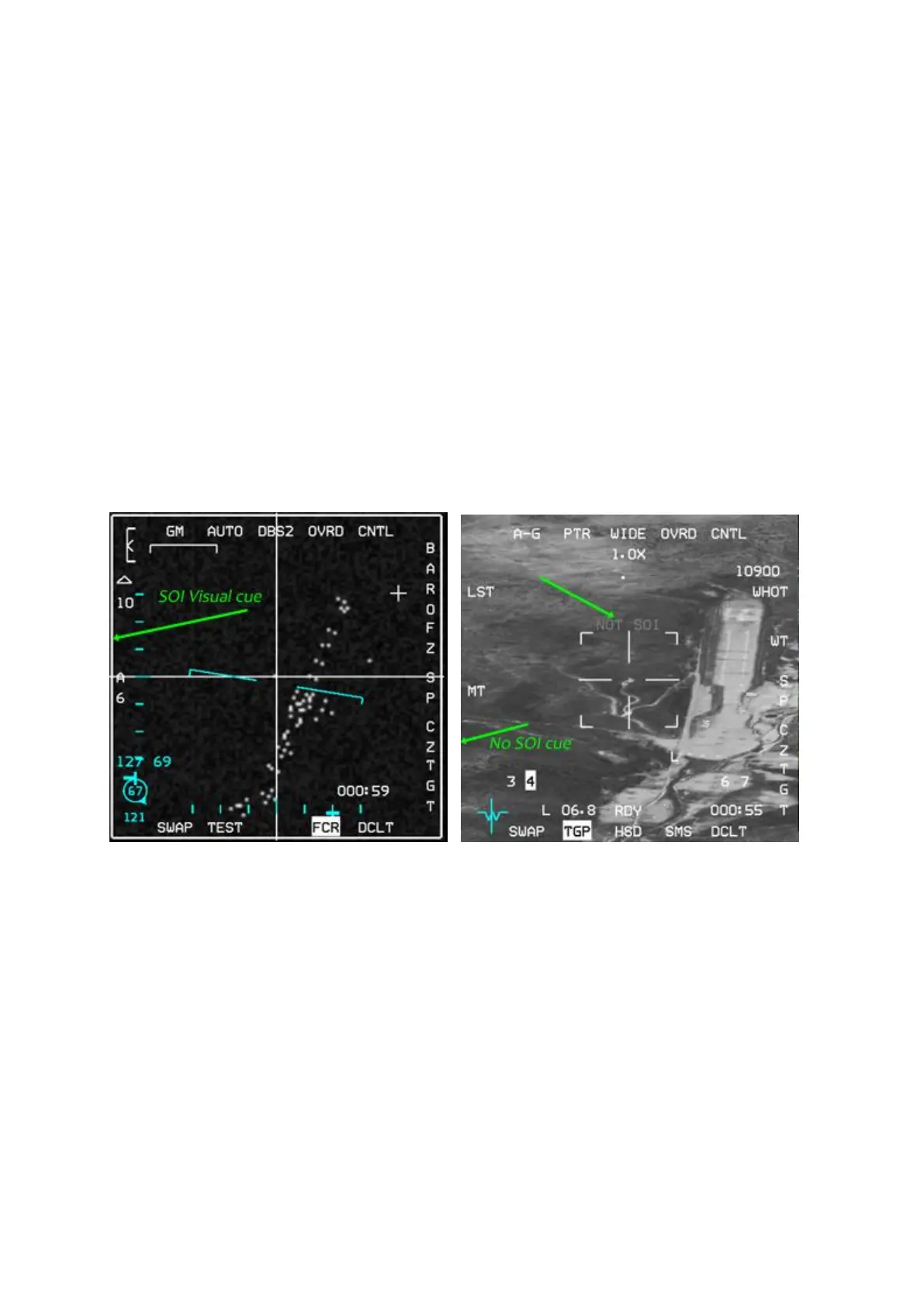 the display. The TGP on the right MFD does not display the SOI cue and instead shows the NOT SOI