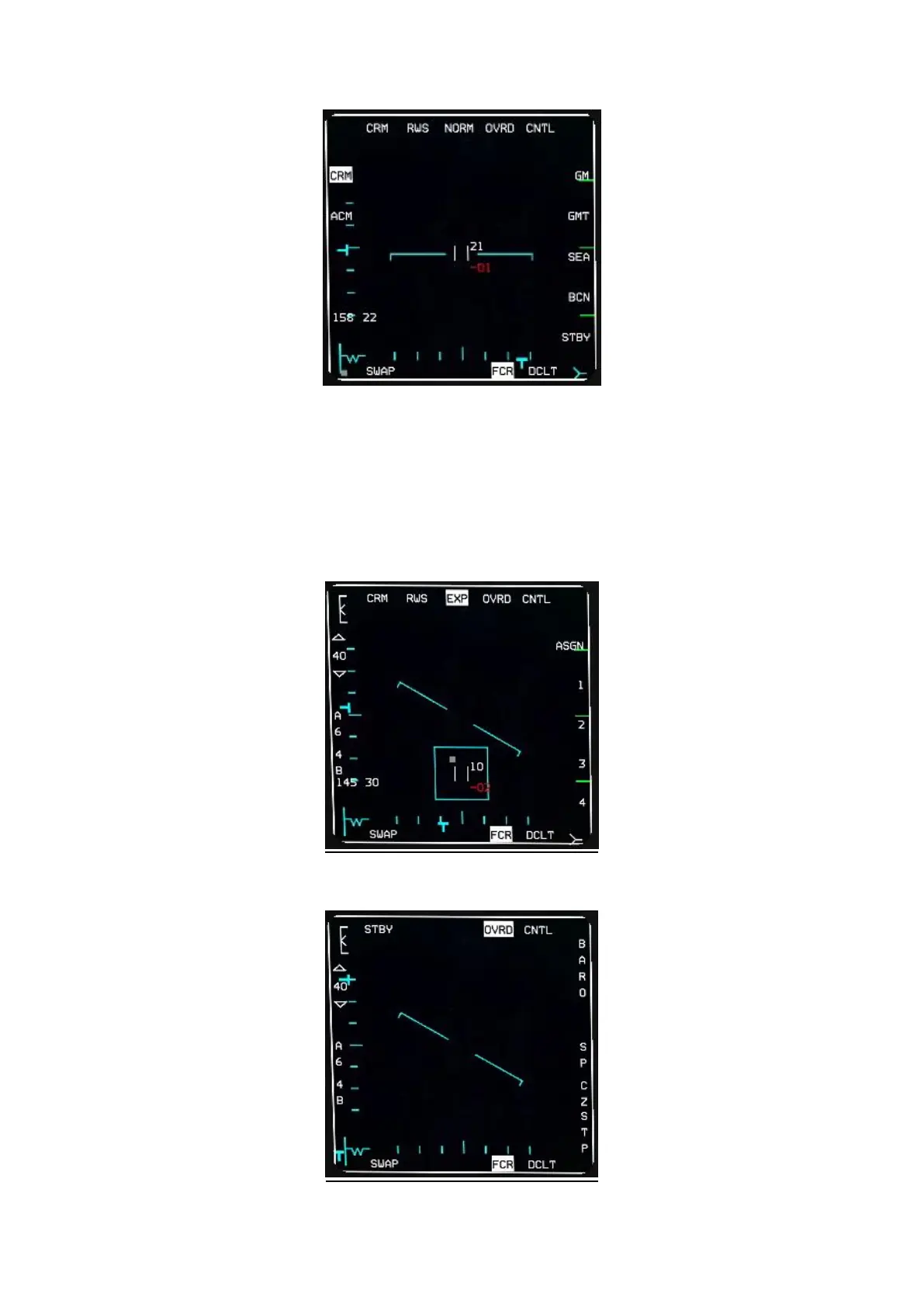 If the FCR is in ACM the submodes are 20 (HUD), Slew, Bore, 60 (Vertical).