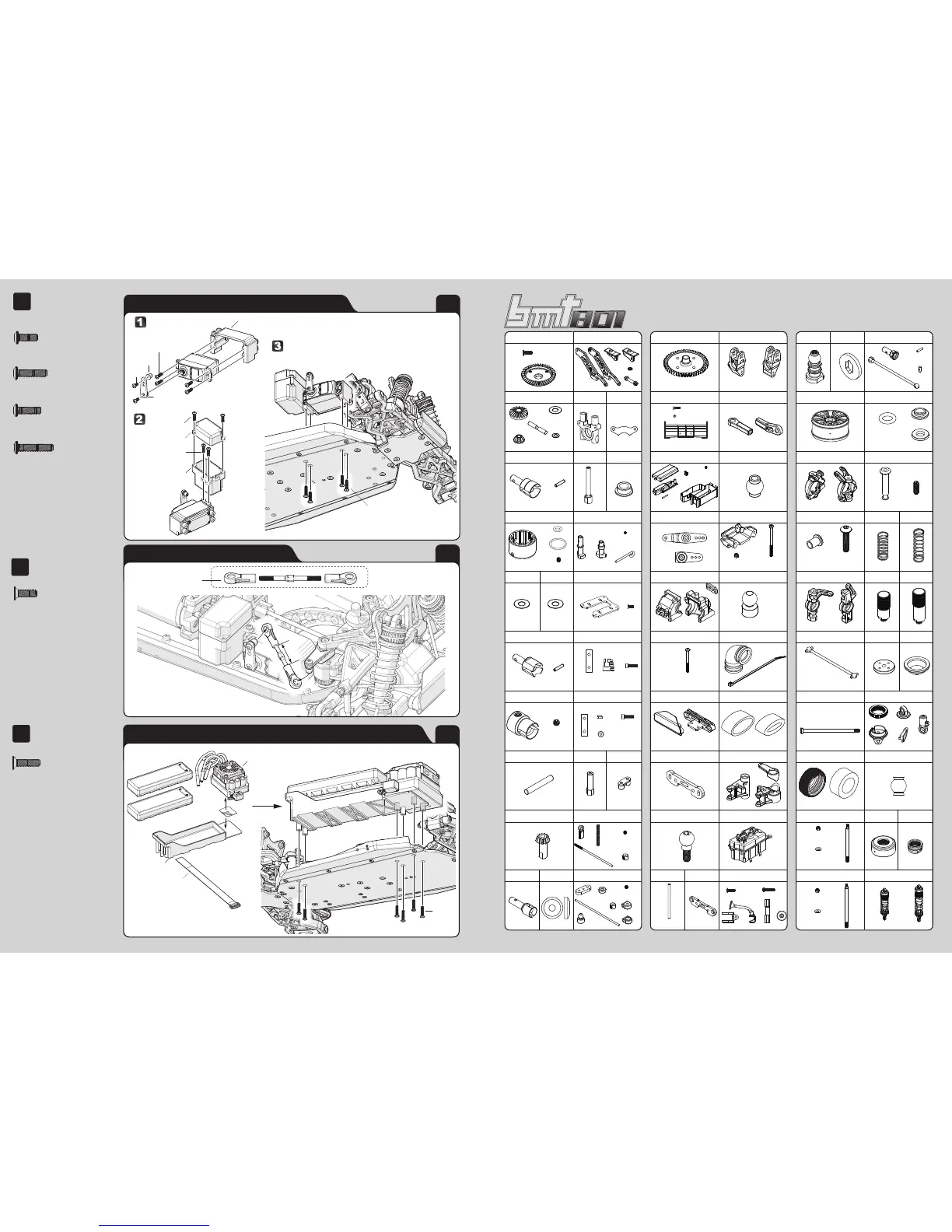 BMT 801 - 03. Receive Box & Steering Servo Assembly; 05. Electric Speed Controller; Battery Tray Unit Assembly