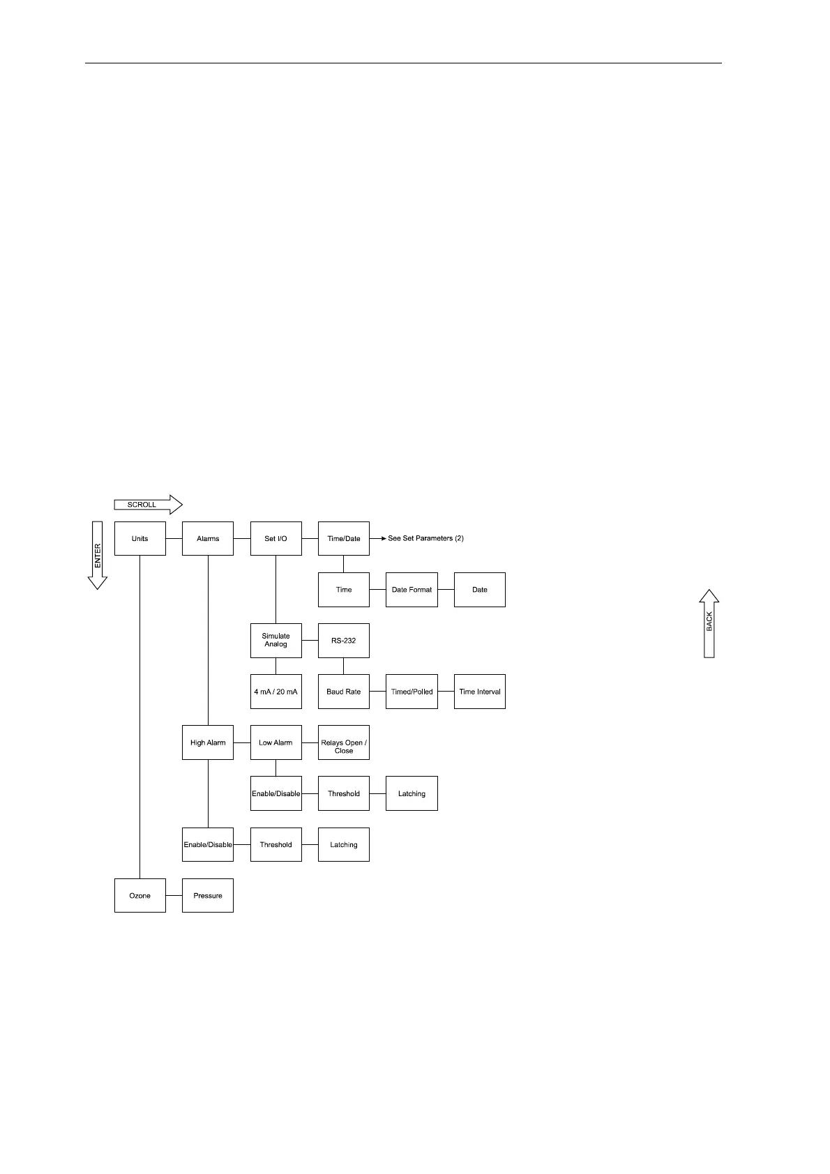 Time interval of auto zero, Alarm beep on/off, ozone concentration range, pressure range,