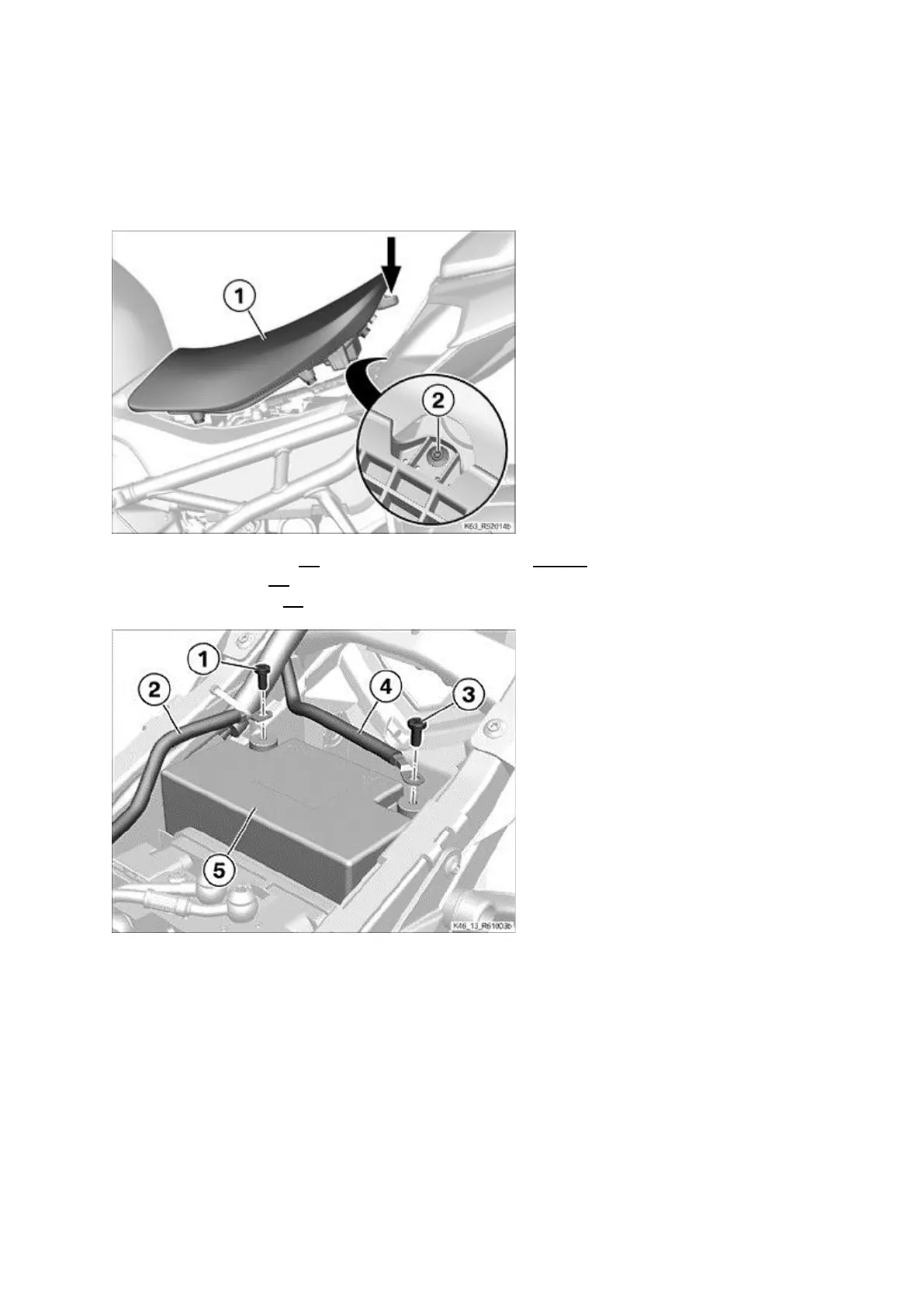 • Push rider's seat (1) at the seat cushion surface (arrow) forward.