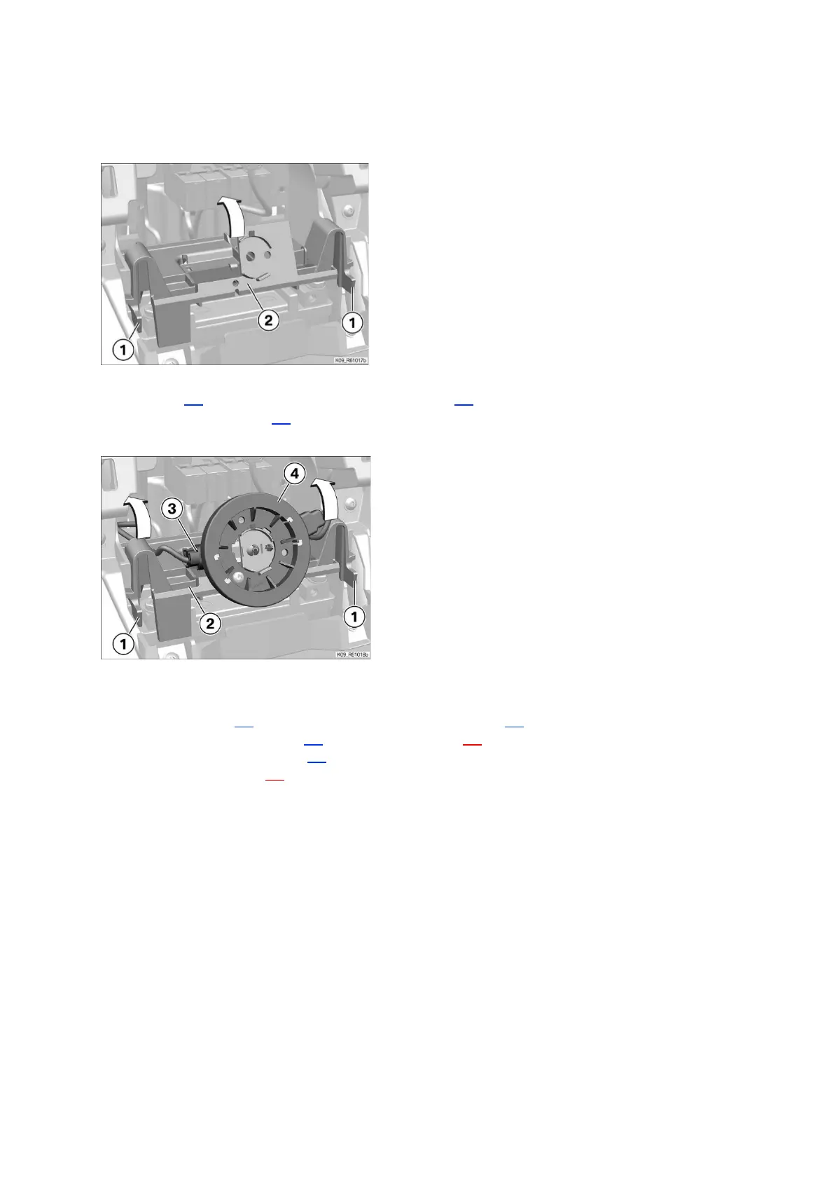 • Unhook battery holder (2) at the rear on the battery compartment and remove with