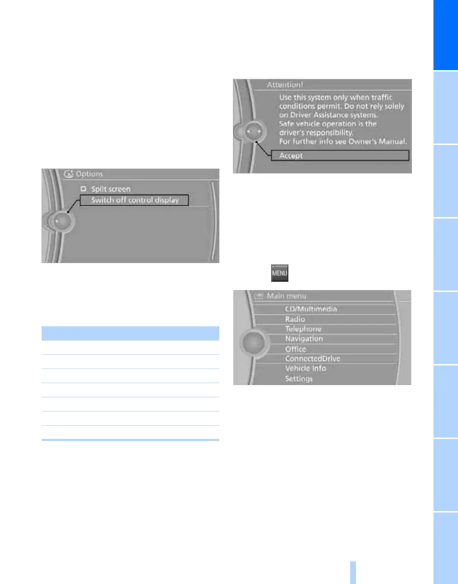 All iDrive functions can be called up via the main