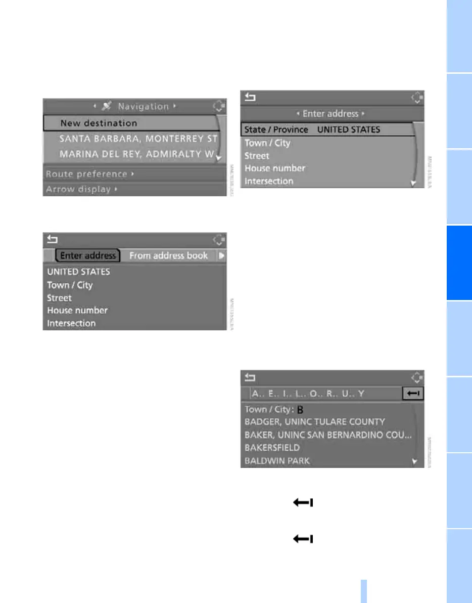 Entering destination by town/city name