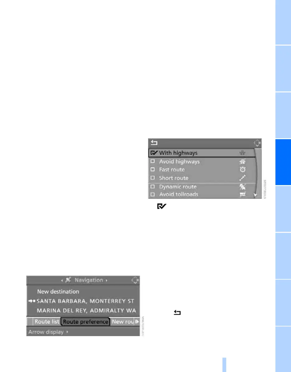 "Route preference" is selected and press