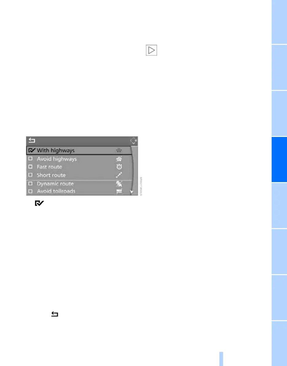 2. Select a route criterion and press the con-