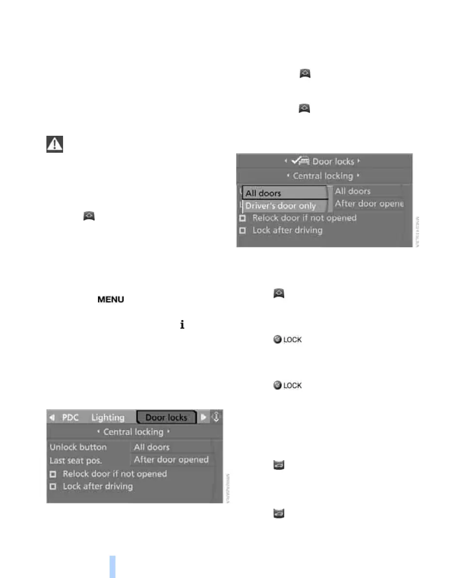 6. Select "Central locking" and press the con-