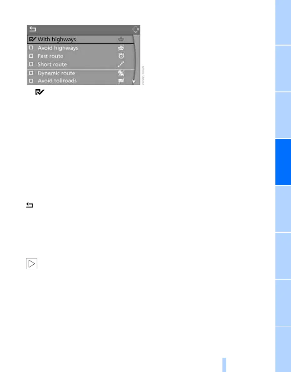 2. Select a route criterion and press the con-