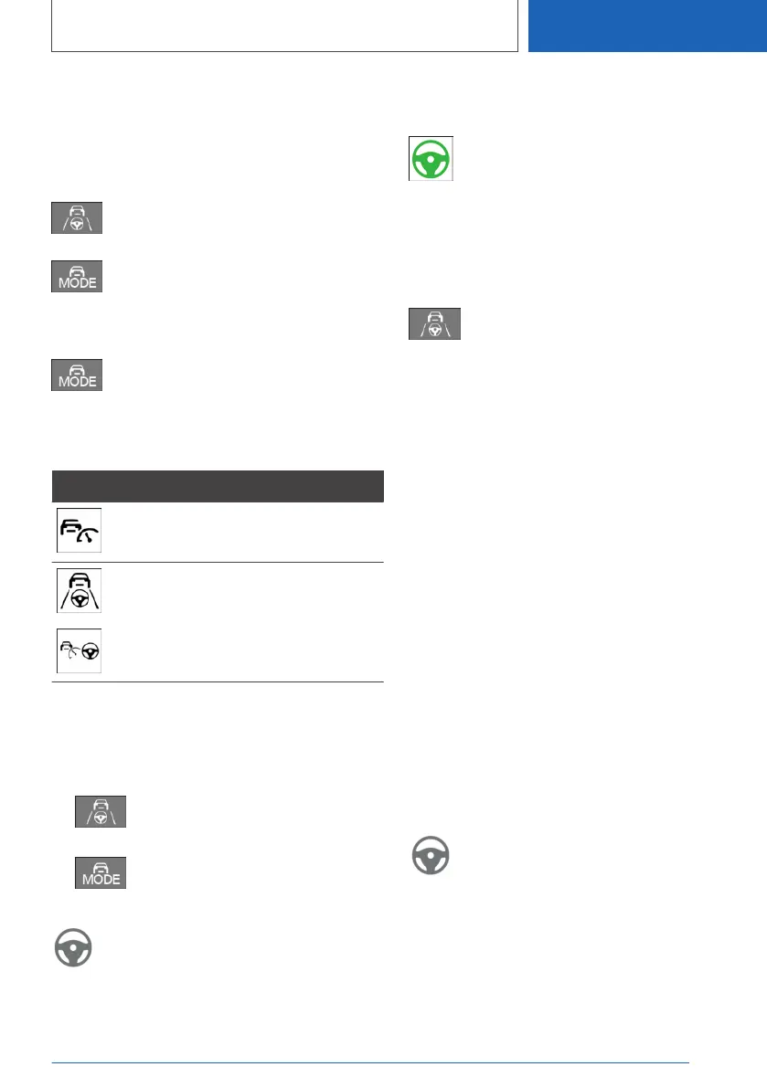 Steering wheel symbol illuminates green.