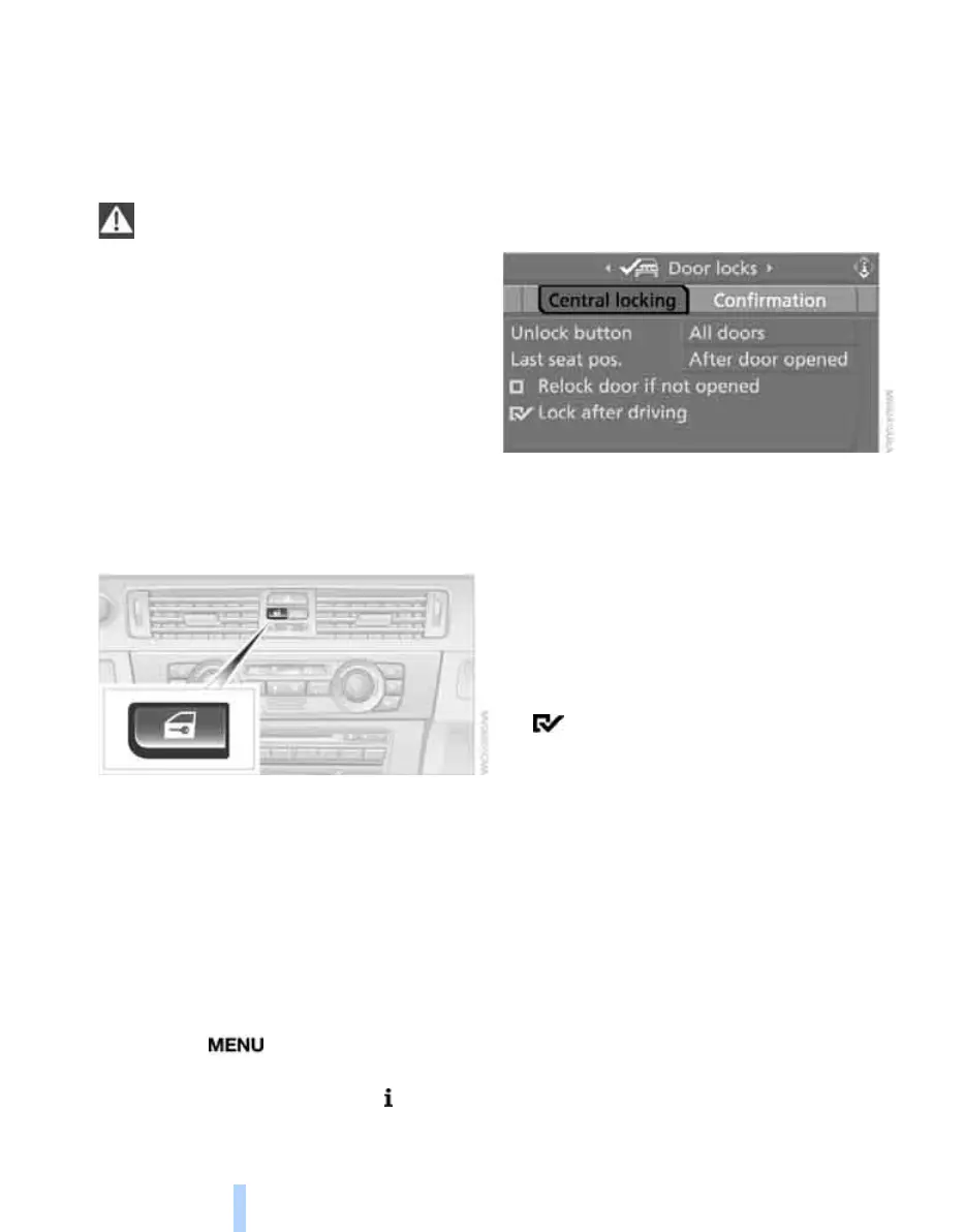6. Select "Central locking" and press the con-