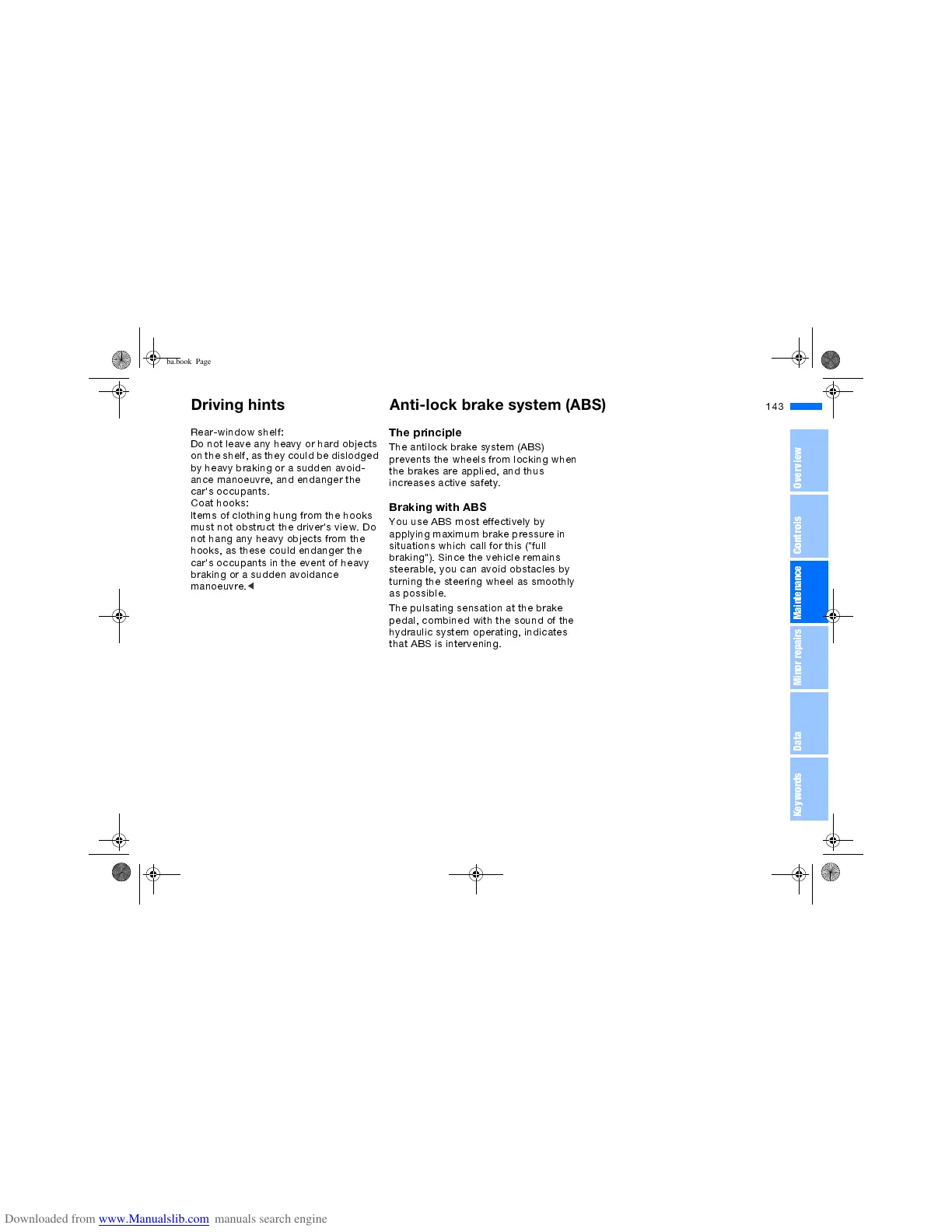 Driving hints Anti-lock brake system (ABS)