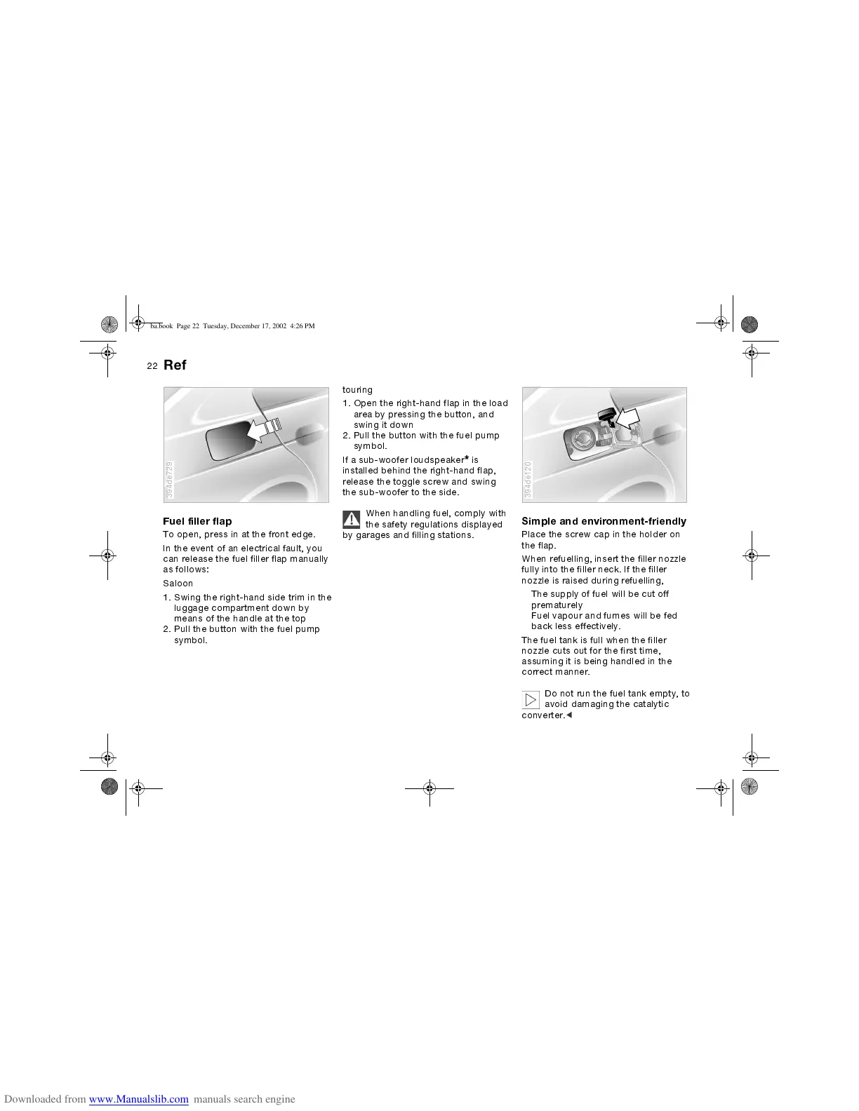 When refuelling, insert the filler nozzle