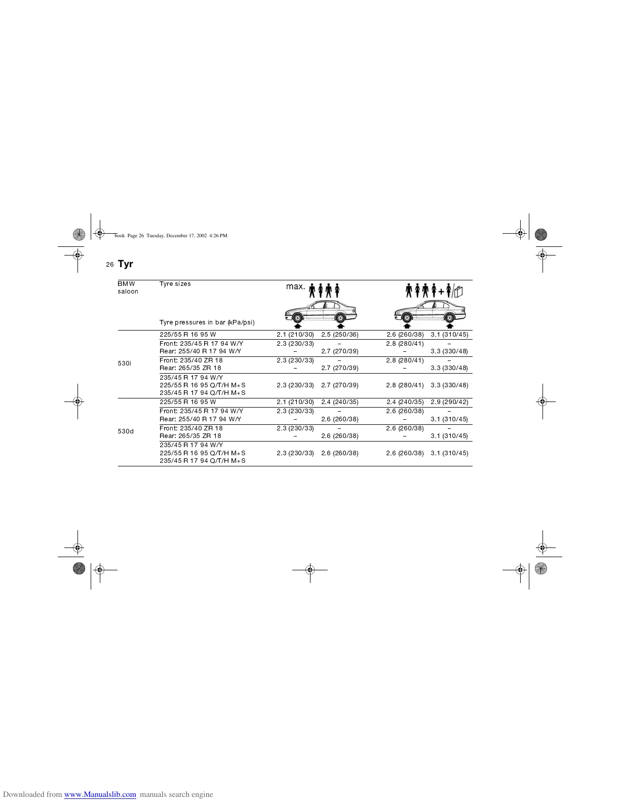 225/55 R 16 95 W 2.1 (210/30) 2.5 (250/36) 2.6 (260/38) 3.1 (310/45)