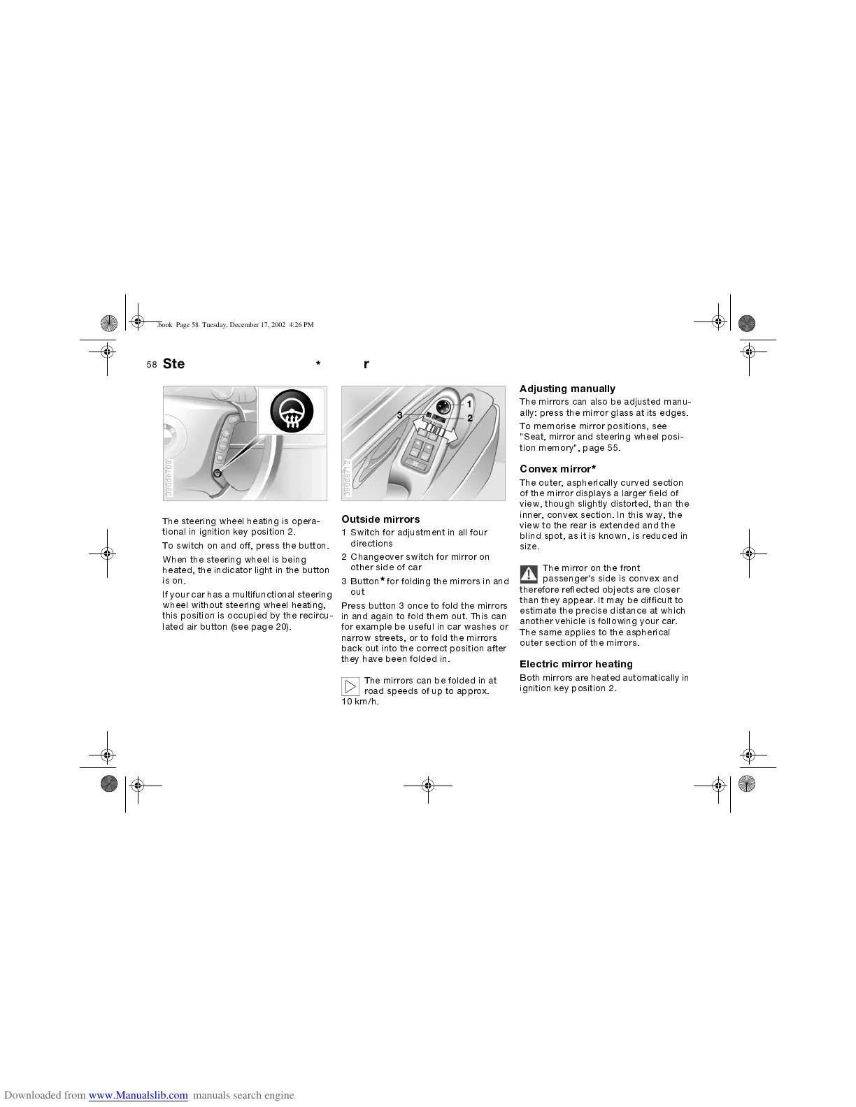 The mirrors can also be adjusted manu-