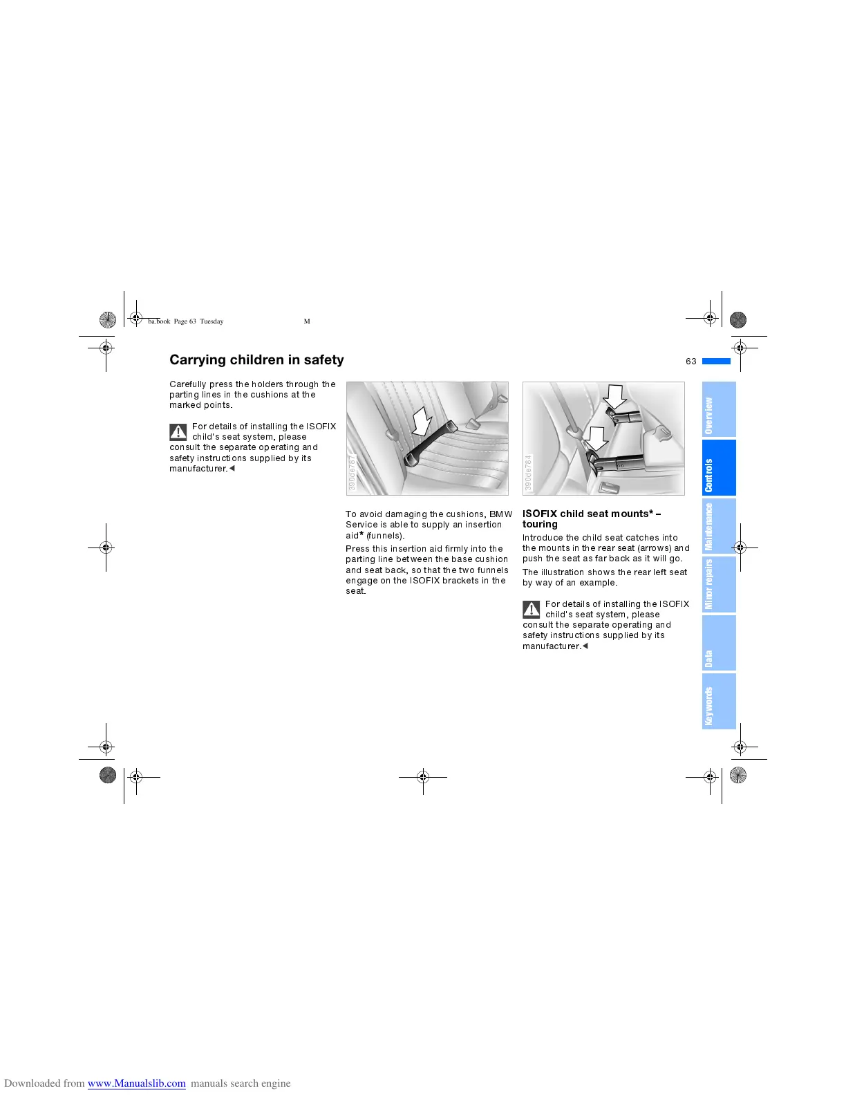 To avoid damaging the cushions, BMW