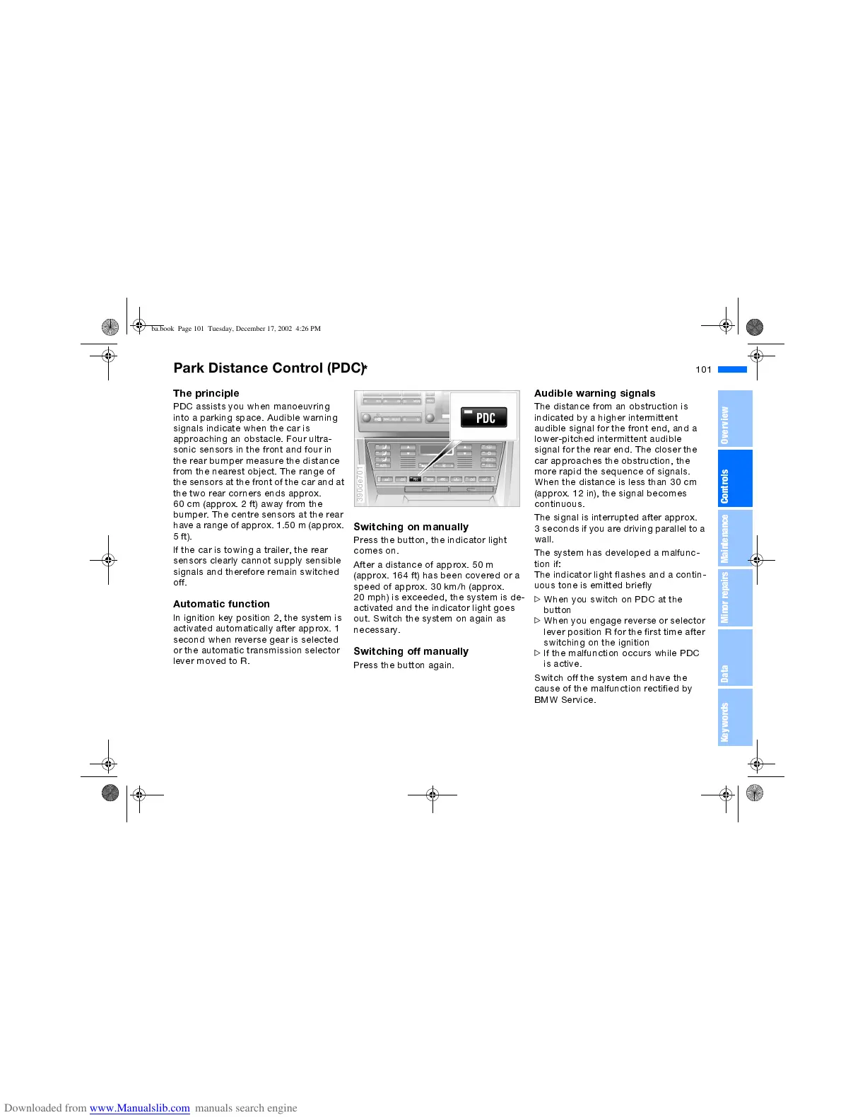 PDC assists you when manoeuvring