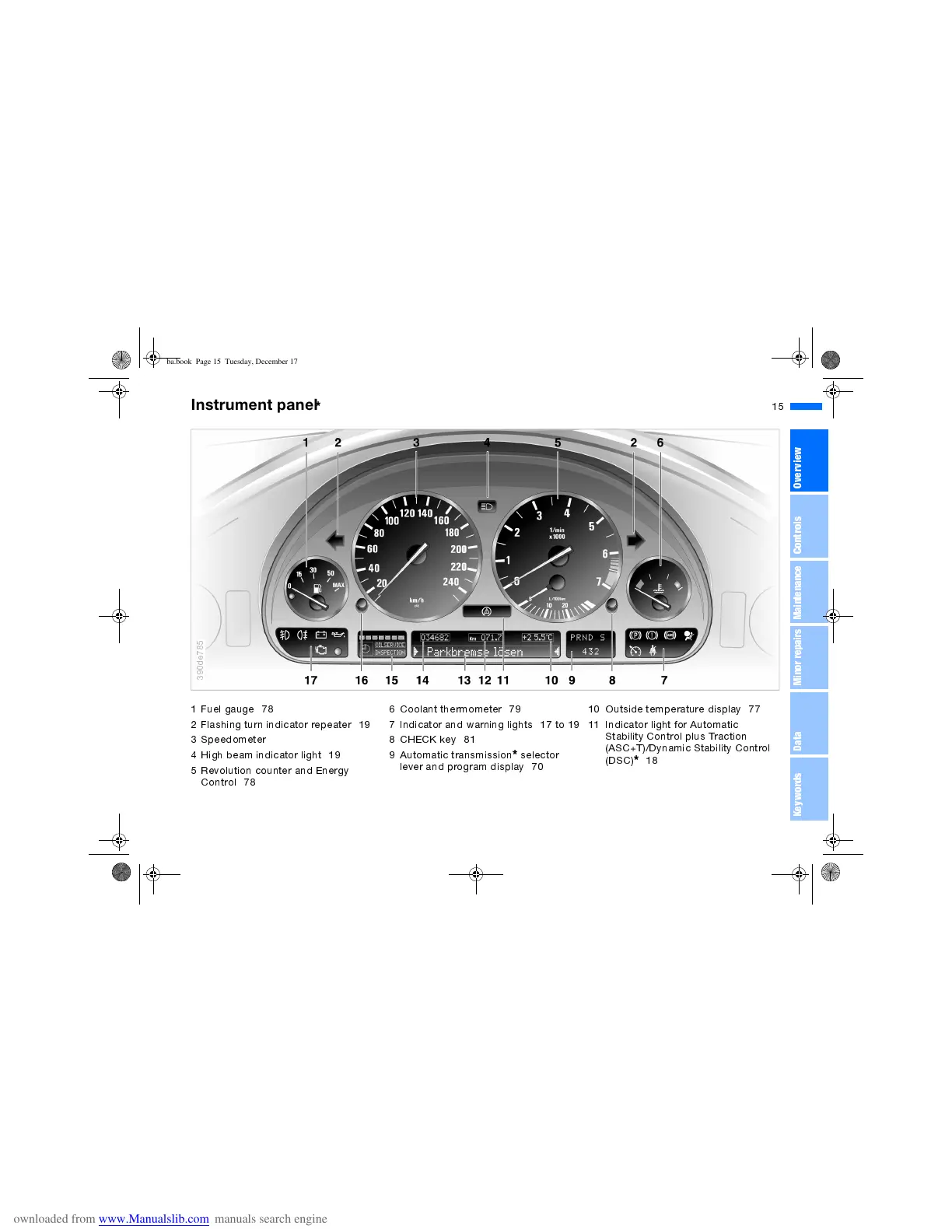 7 Indicator and warning lights 17 to 19