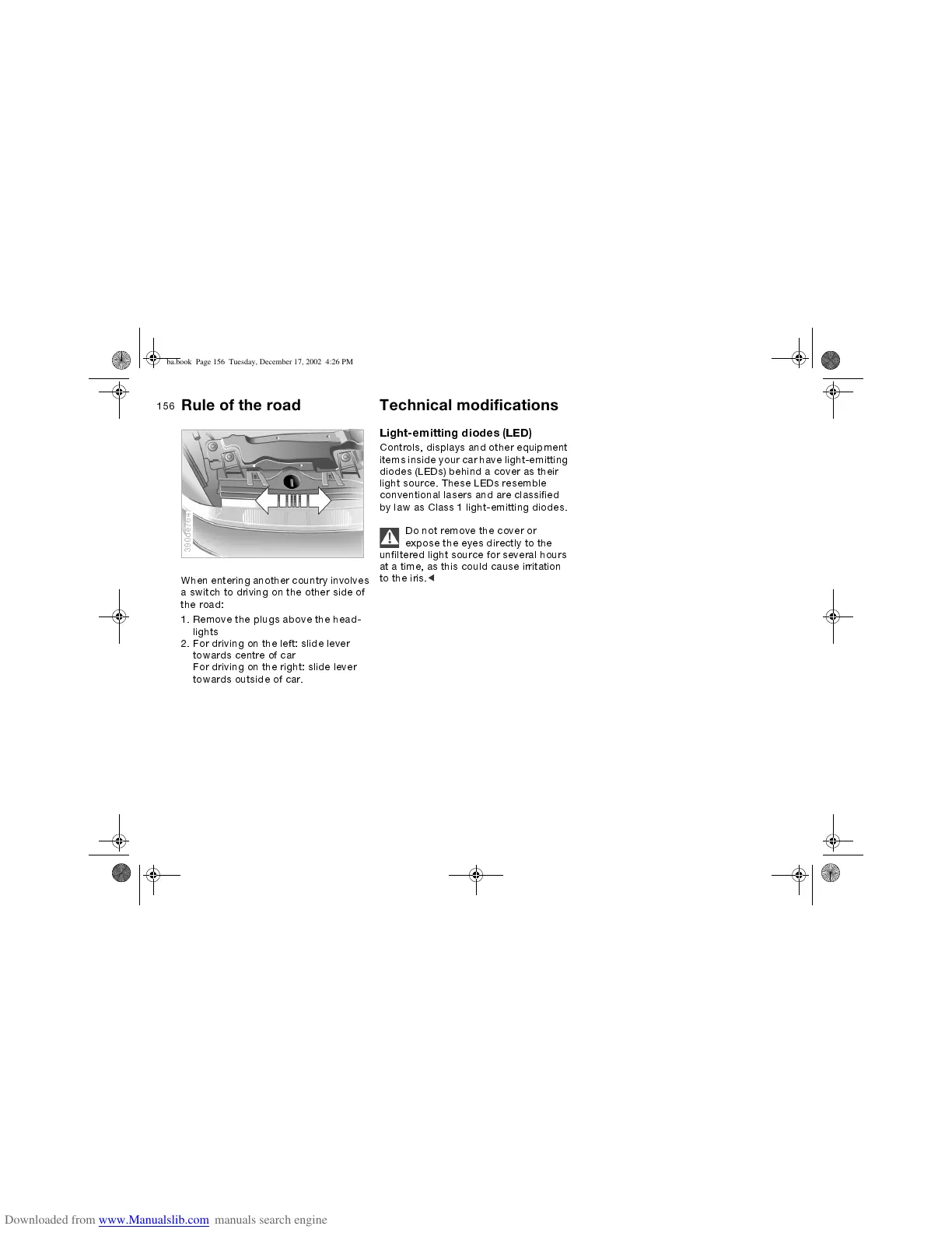 Rule of the road Technical modifications