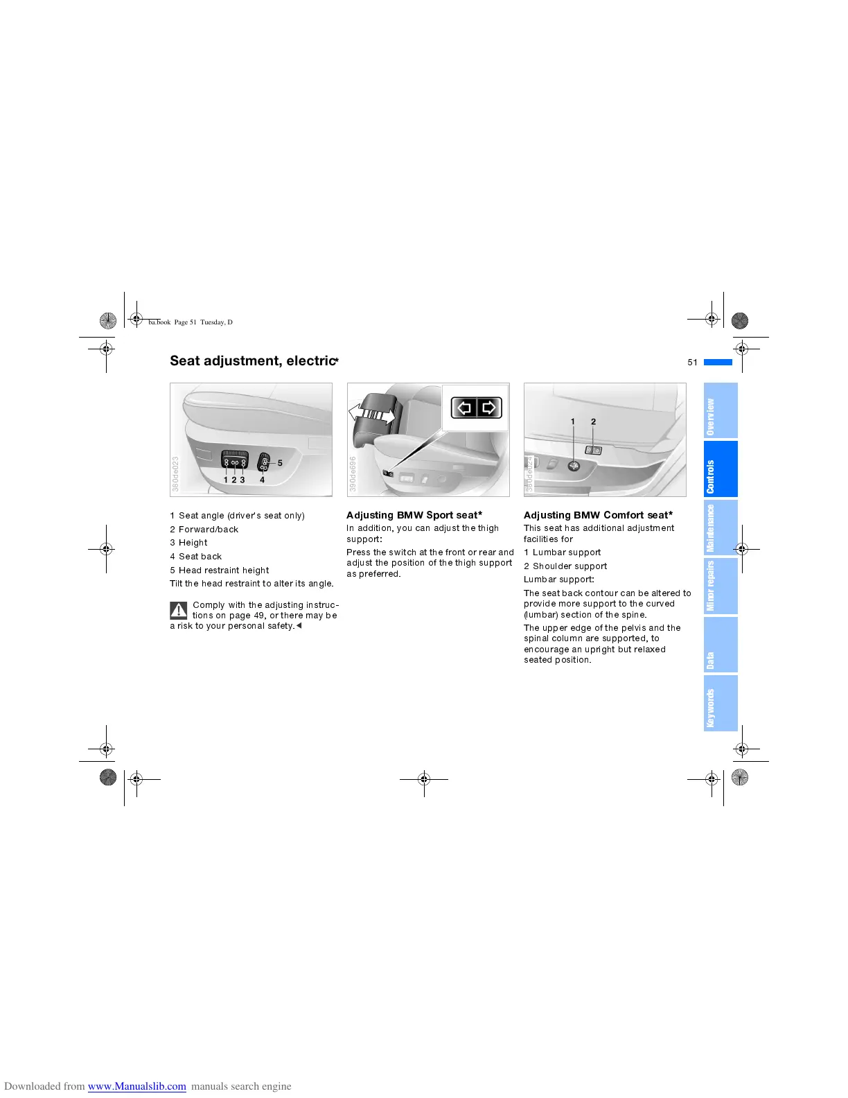 Adjusting BMW Comfort seat
