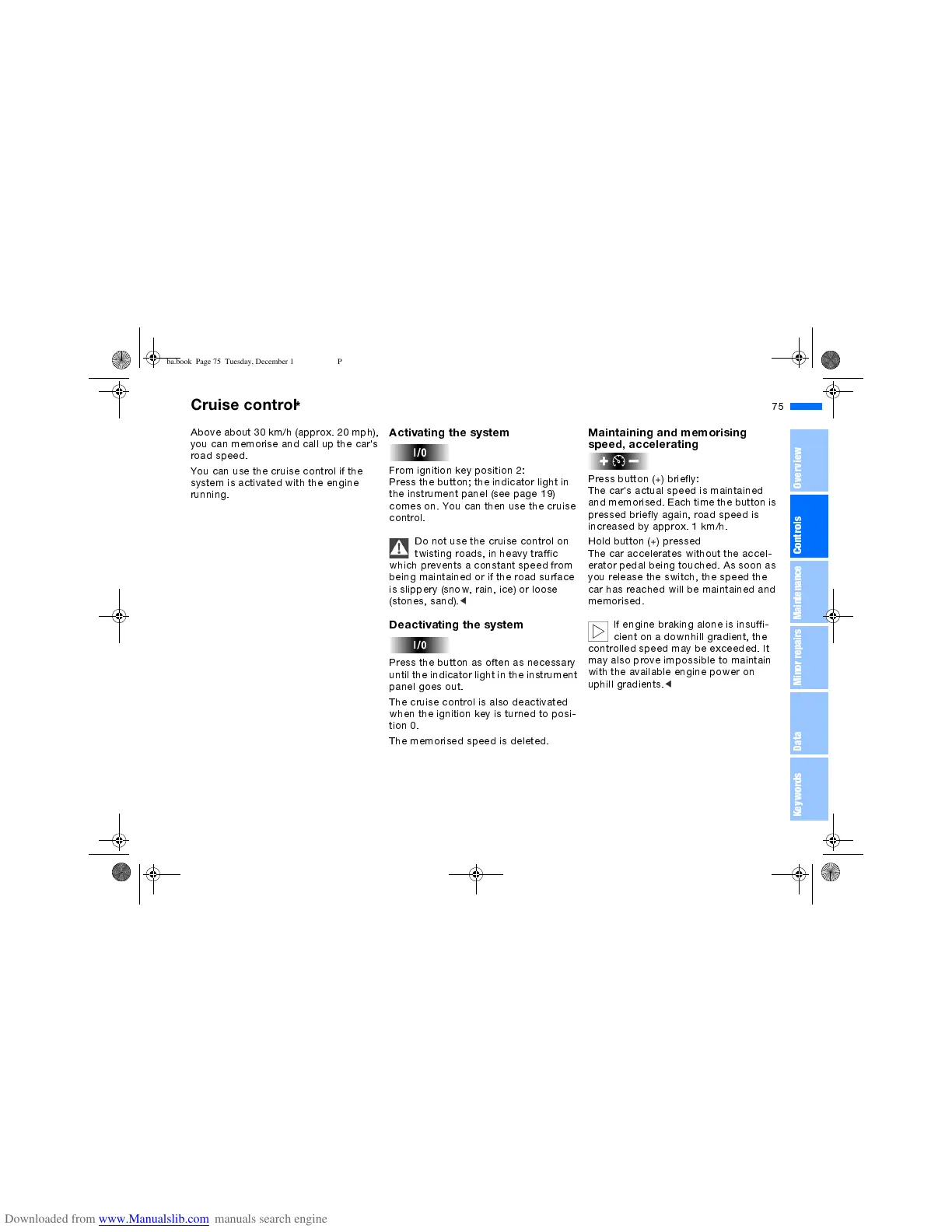 comes on. You can then use the cruise