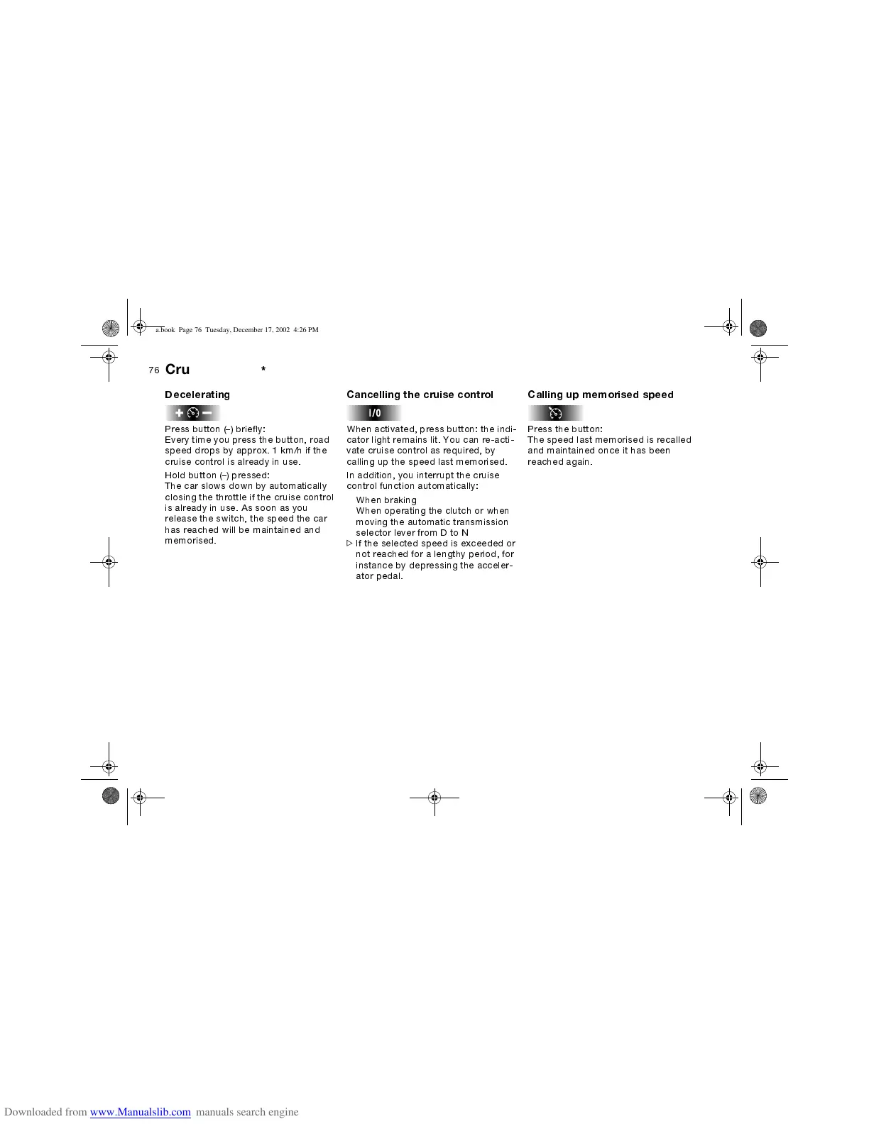 The speed last memorised is recalled
