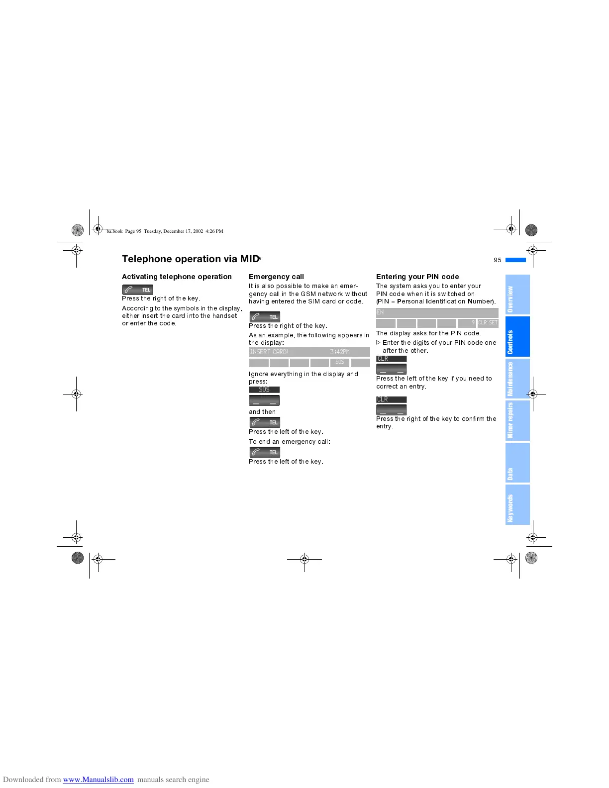 The display asks for the PIN code.
