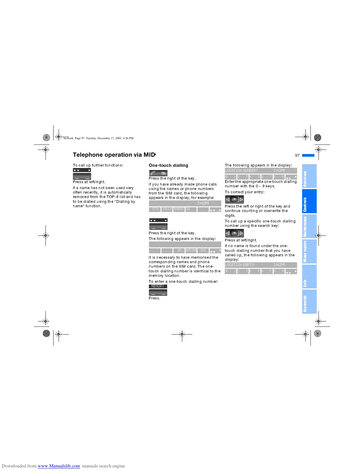 To call up a specific one-touch dialling