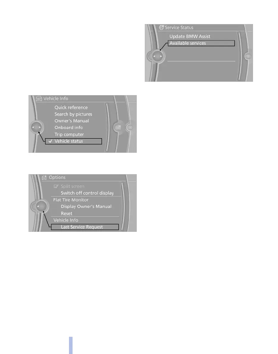 Display of all services available in the vehicle.