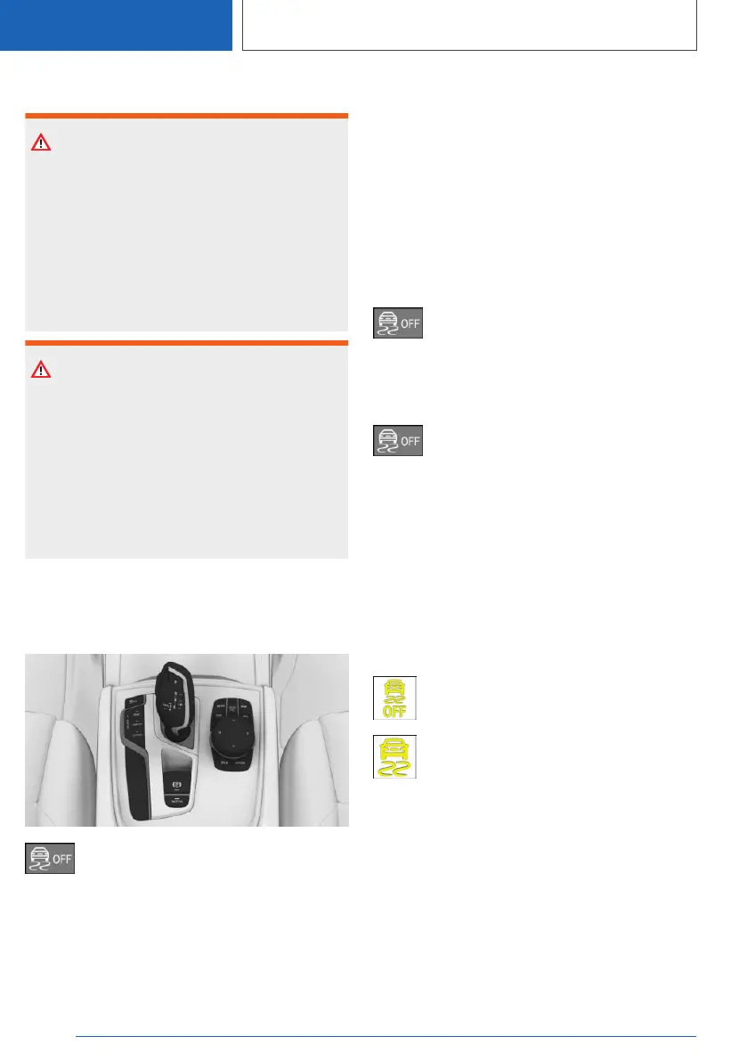 When DSC is deactivated, driving stability is re‐