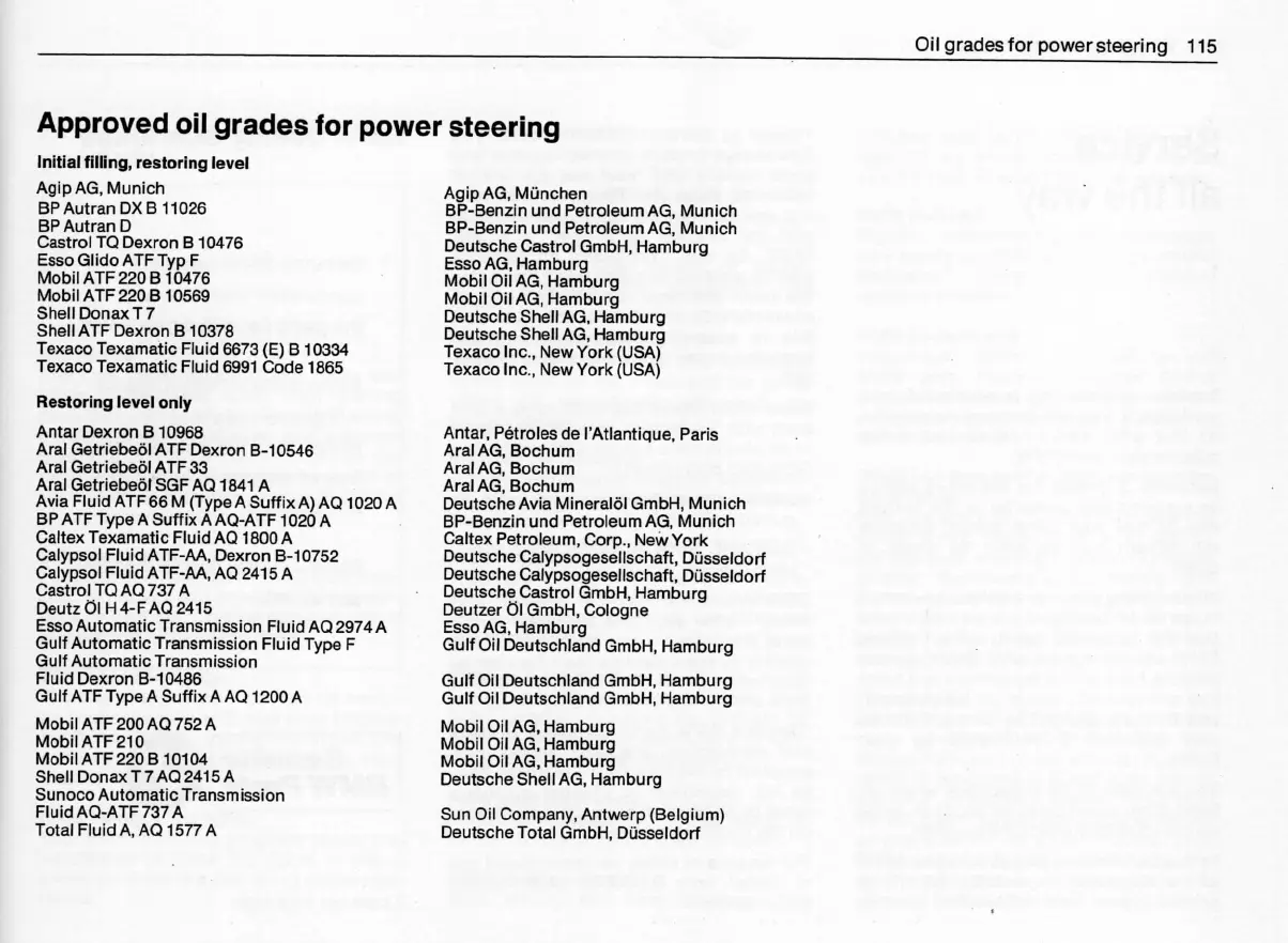 Oil gradesfor powersteering 115