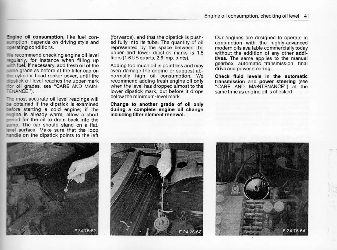 Engineoil consumption, checkingoil level 41