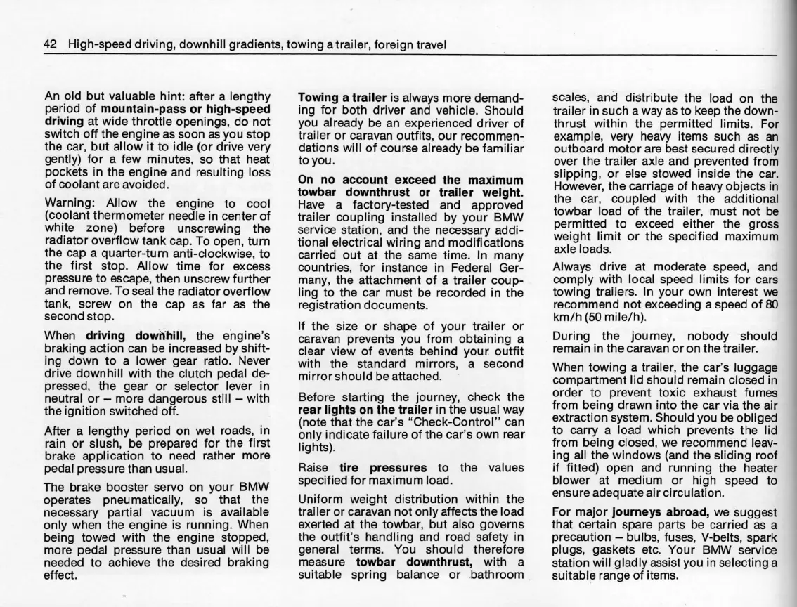 42 High-speed driving, downhill gradients, towing atrailer. foreign travel