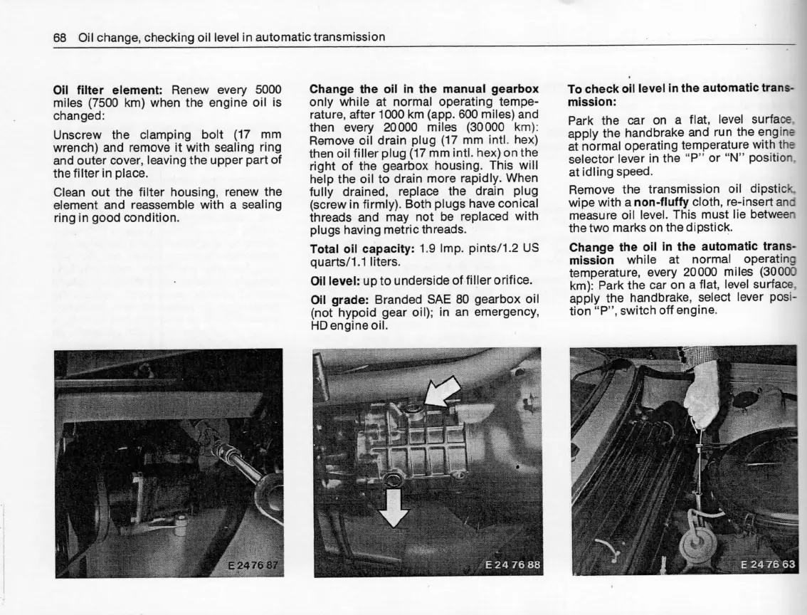 68 0il change, checking oil level in automatictransmission
