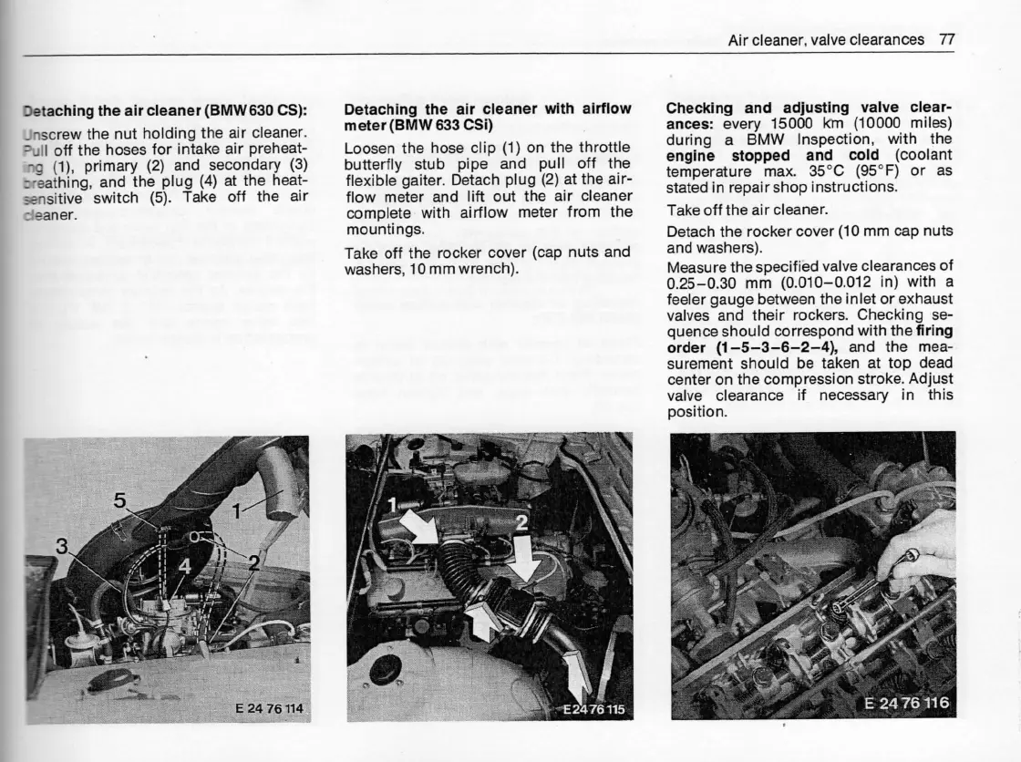 Aircleaner, valve clearances 77