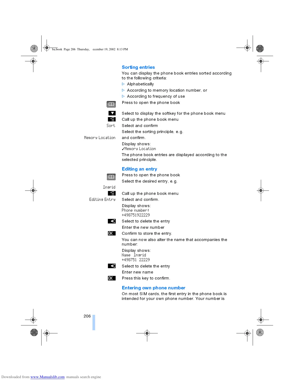 The phone book entries are displayed according to the