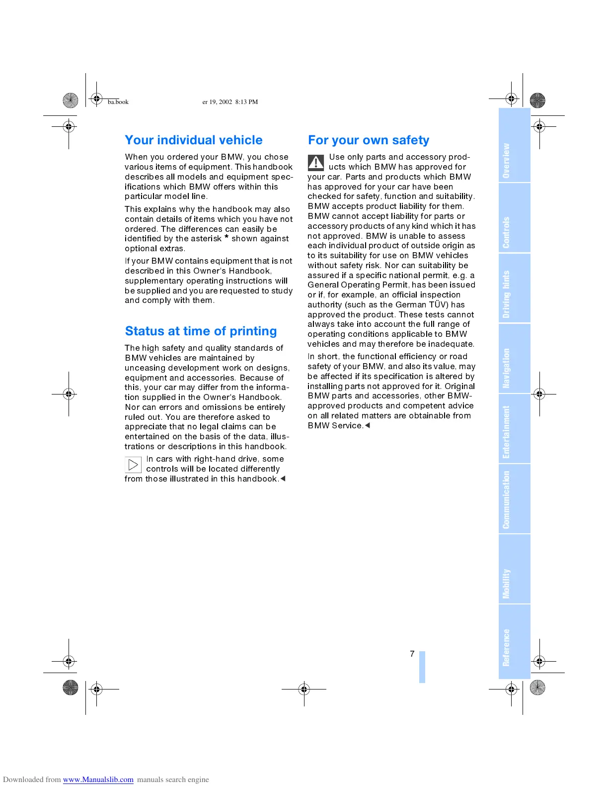 OverviewControlsDriving hintsCommunication NavigationEntertainmentMobilityReference